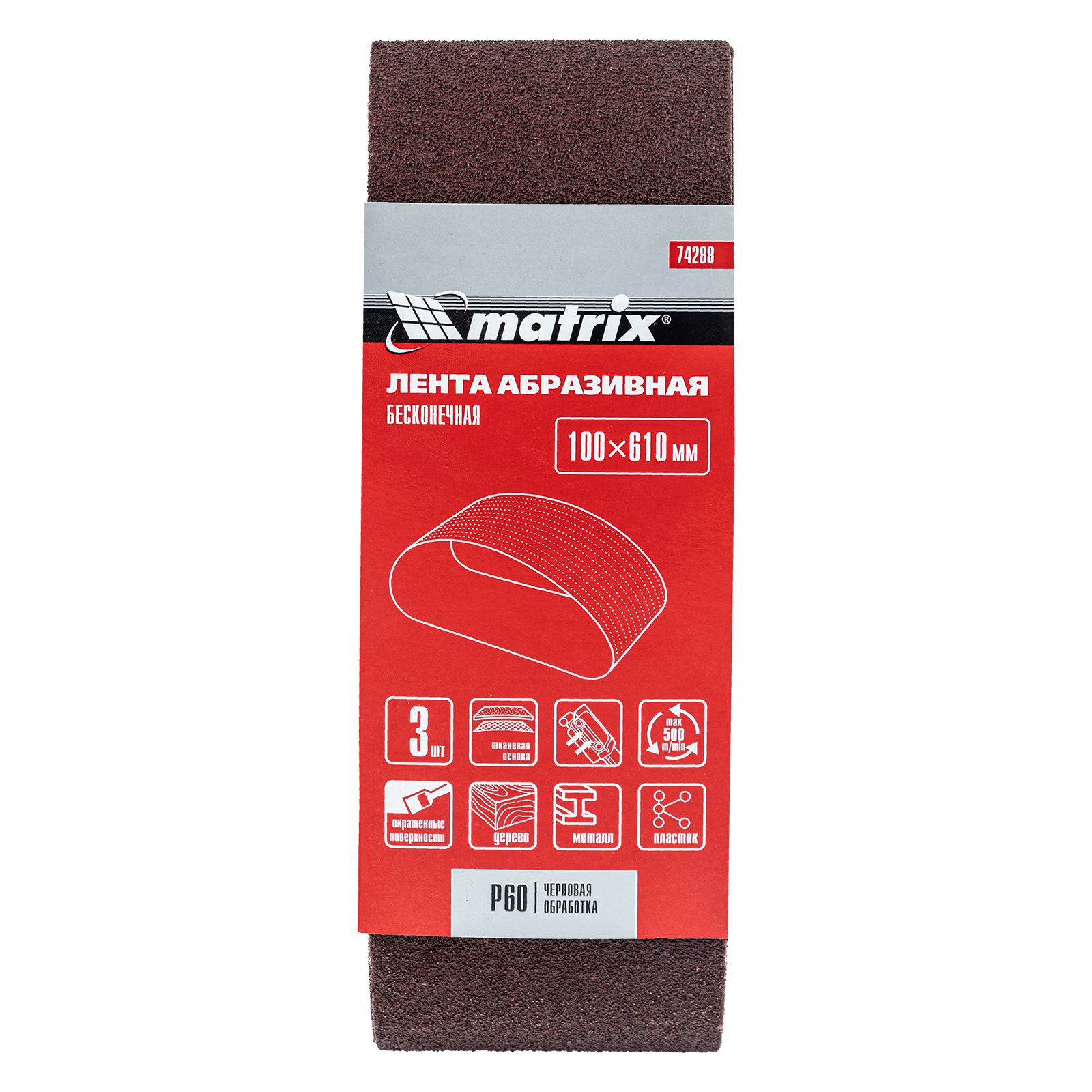 Абразивная лента Matrix 74288 зернистостью P 60 поставляется в наборе из 3 шт. и используется на ленточных шлифовальных машинах, совместимых со сменными элементами размером 100 х 610 мм. Применяется для черновой обработки деревянных, пластиковых и металлических поверхностей. Подходит для снятия лака, краски, ржавчины, заусенцев и т.д.