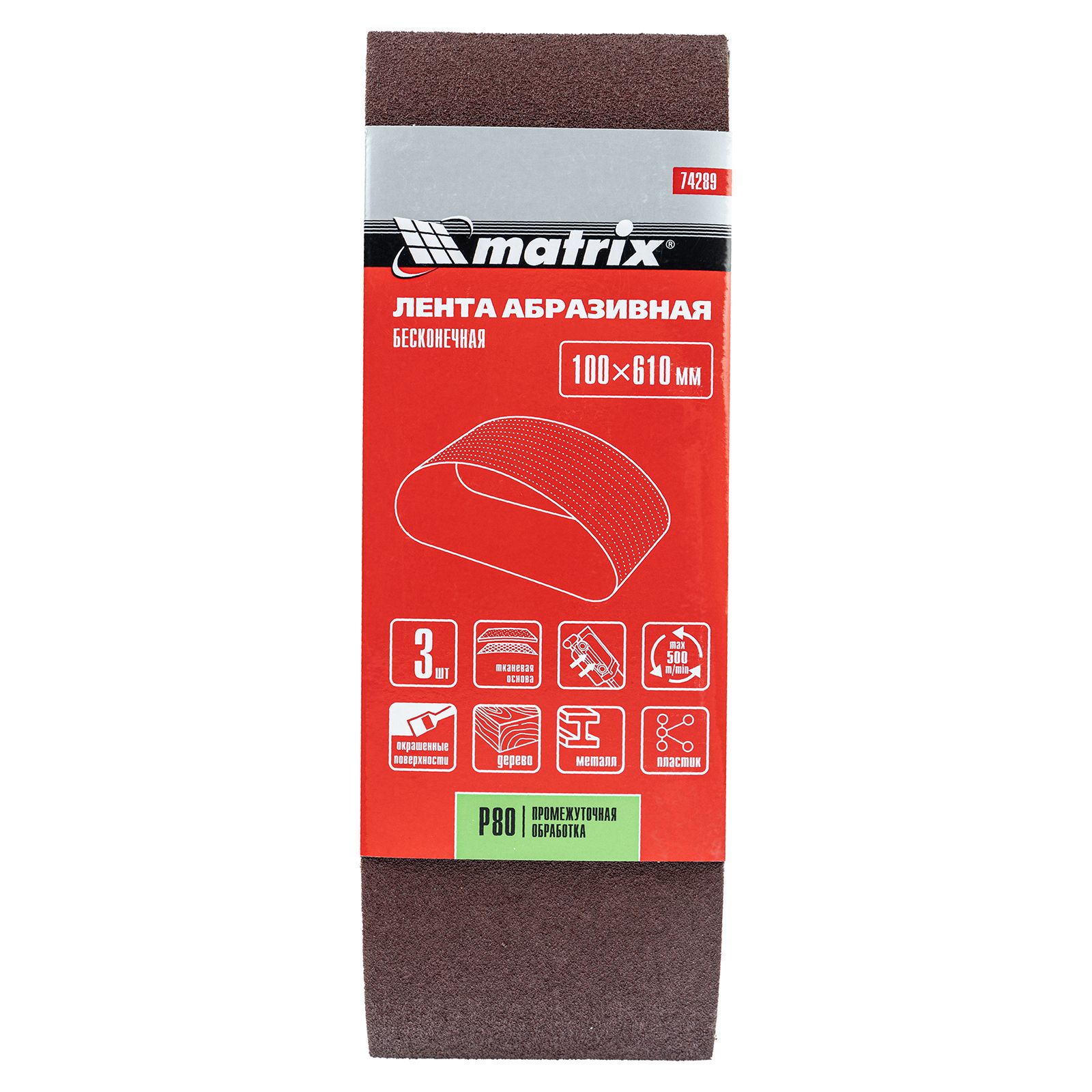 Абразивная лента Matrix 74289 зернистостью P 80 поставляется в наборе из 3 шт. и используется на ленточных шлифовальных машинах, совместимых со сменными элементами размером 100 х 610 мм. Применяется для промежуточной обработки и получения более гладкой поверхности деревянных, пластиковых и металлических предметов. Подходит для снятия лака, краски, ржавчины, заусенцев и т.д.