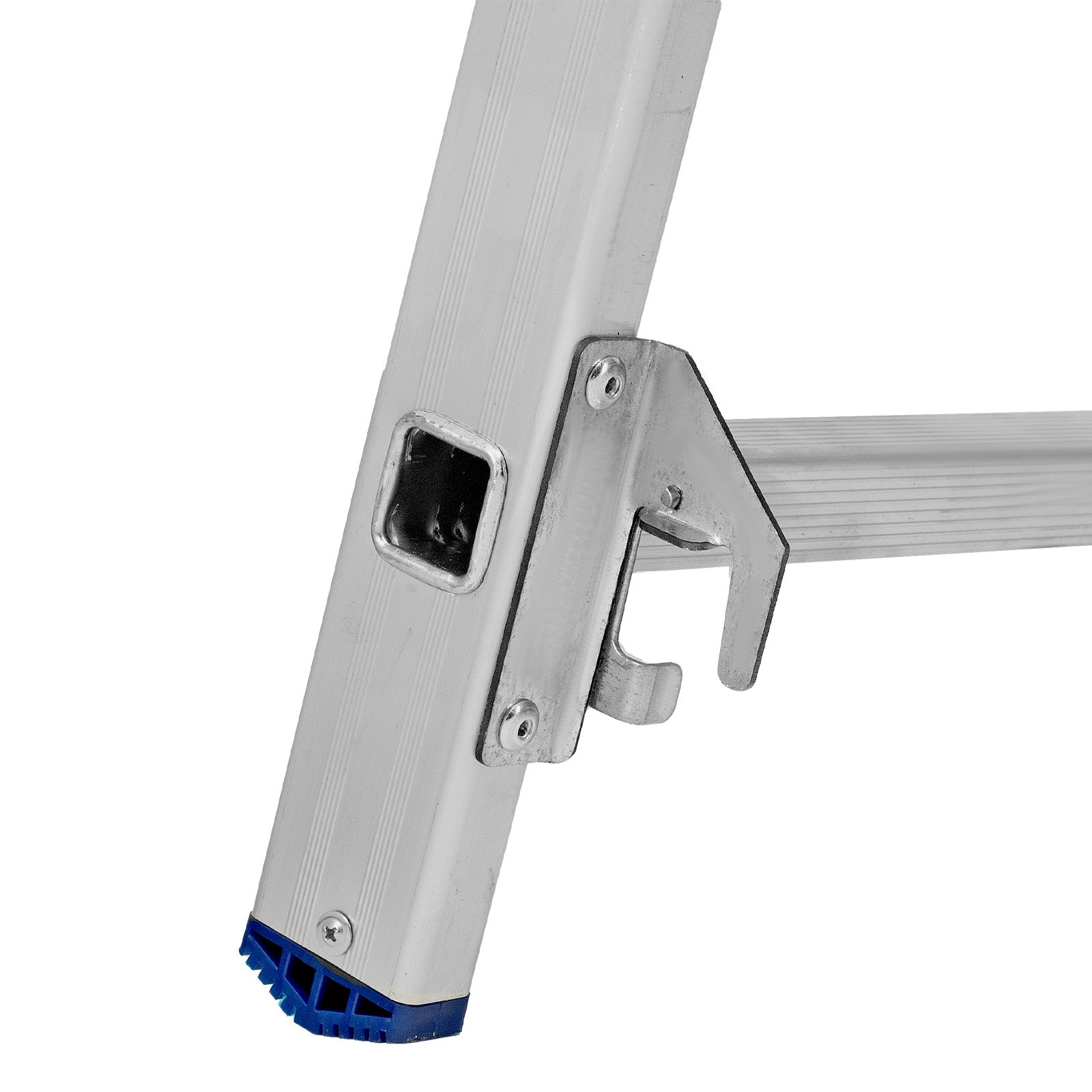 - 3 рабочих положения — стремянка, двухсторонняя стремянка, приставная лестница с одной или двумя секциями.