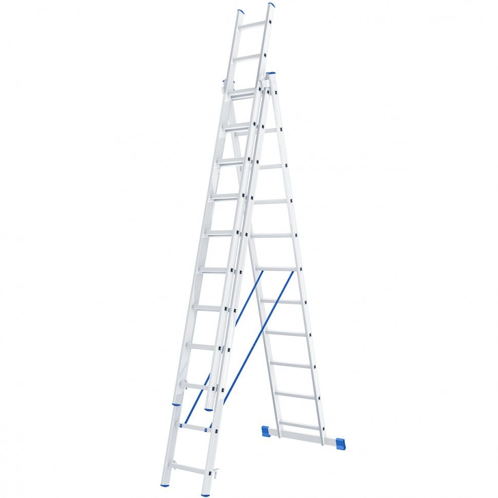 Алюминиевая трехсекционная лестница Сибртех 97821 состоит из 3 секций по 11 ступеней каждая. Она предназначена для использования преимущественно на открытом воздухе и в помещениях с высокими потолками, подойдет также для работников коммунальных служб и строителей. Лестница поможет провести отделочные, монтажные работы, будет полезна на складе.