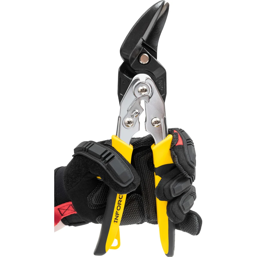 Усиленные ножницы по металлу Inforce с выносом, левые, длиной 260 мм, представляют собой надежный инструмент для профессионального использования. Они изготовлены из высококачественной стали CrMo, что обеспечивает долговечность и устойчивость к износу. Ножницы предназначены для резки металла толщиной до 1,5 мм, что делает их идеальными для работы с различными металлическими материалами. Пластиковые рукоятки обеспечивают удобный и надежный захват, что способствует комфортной работе даже при длительном использовании.