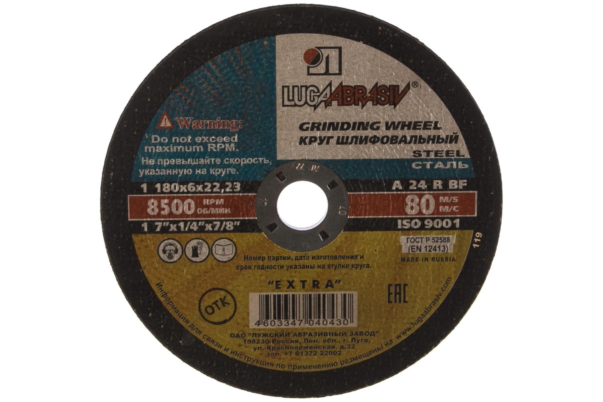 Круг шлифовальный абразивный ЛУГА по металлу для УШМ 3650-180-06