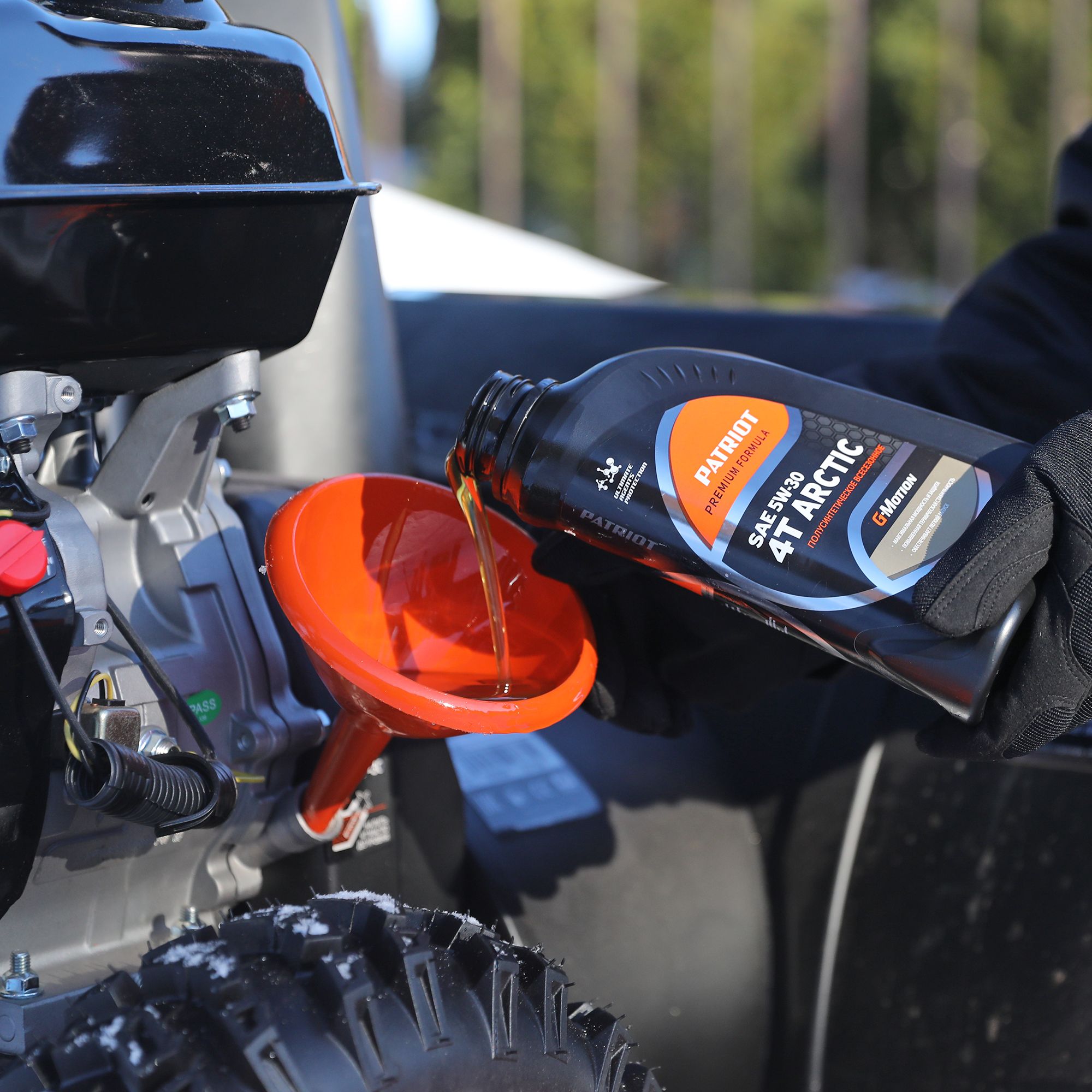 PATRIOT G-Motion 4T Arctic SAE 5W-30 – всесезонное моторное масло c улучшенными низкотемпературными свойствами, предназначенное для использования в четырехтактных малолитражных бензиновых и дизельных двигателях стационарной и подвижной садовой техники (генераторов, мотопомп, культиваторов, газонокосилок, мини-тракторов, снегоуборщиков). Производится на основе синтетических базовых масел и технологии Ultimate Agents Protection, которая обеспечивает защиту деталей двигателя от отложений, износа и коррозии. Может применяться в двигателях, требующих масло категории API SL/CF и ниже. Обеспечивает запуск двигателя вплоть до -30 °С окружающего воздуха и защищает двигатель до +45 °С.