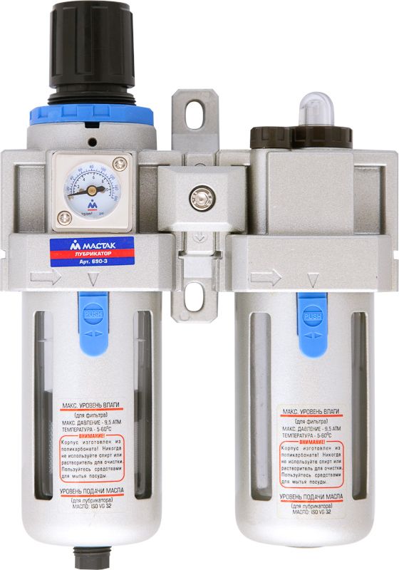 Блок устанавливается в пневмолинию и предназначен для подготовки сжатого воздуха (фильтрация, регулировка и добавление масла) для пневматического инструмента и оборудования.
