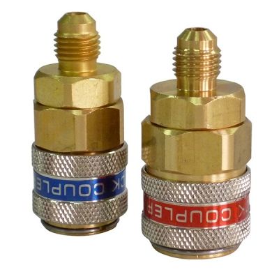 Набор муфт быстросъемных, 2 предмета МАСТАК 105-40002 предназначен для подсоединения к порту заправки и диагностики автомобильных кондиционеров, работающих на хладагенте R134a, или малых рефрижераторных установок на R404a.
