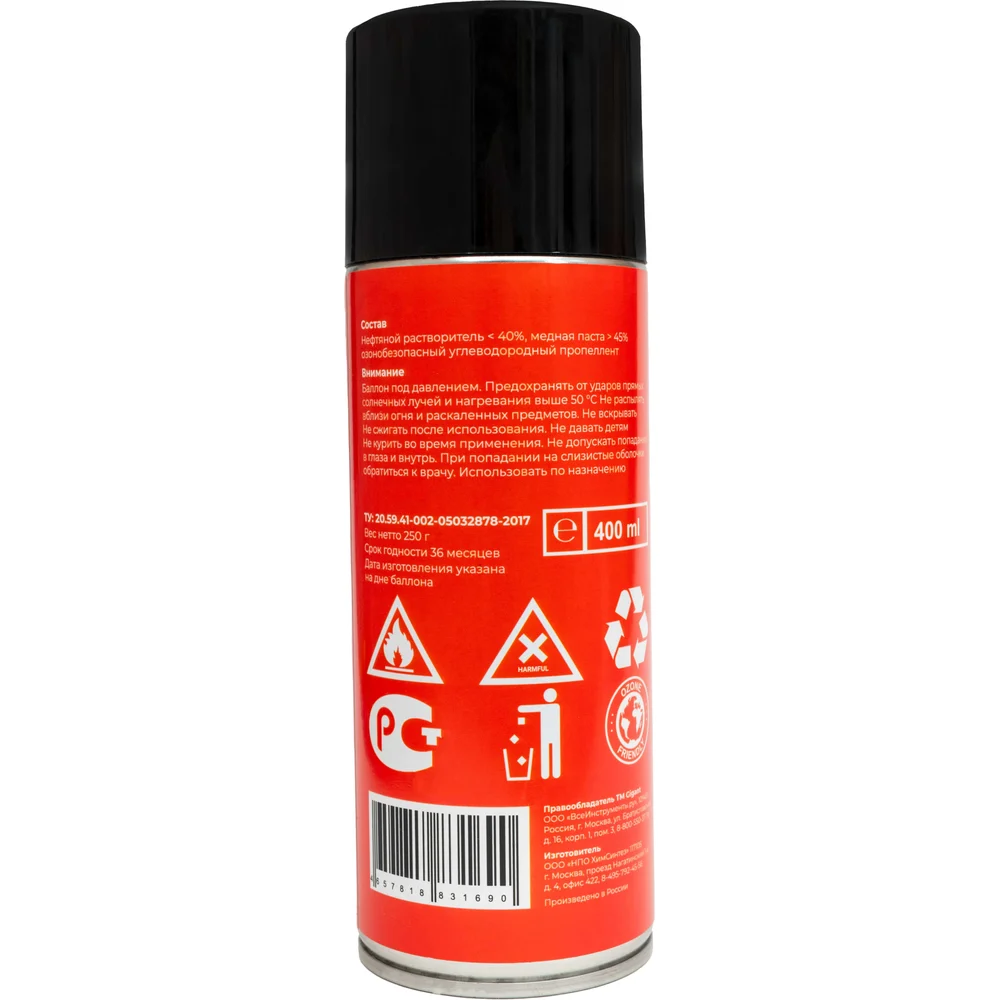 Медная смазка Gigant 520мл GLM-520 используется для обработки резьбовых соединений и деталей, подвергающихся экстремальным температурам и давлению. Продукт предотвращает коррозийное прикипание и холодное сваривание контактирующих элементов. Смазка отличается высокой стойкостью к воздействию атмосферных осадков и дорожных реагентов. Эффективно работает в широком температурном диапазоне – от -30 ºС до +1100 ºС. Внимание, изображение товара может отличаться от реального! Верные параметры указаны в технических характеристиках товара.