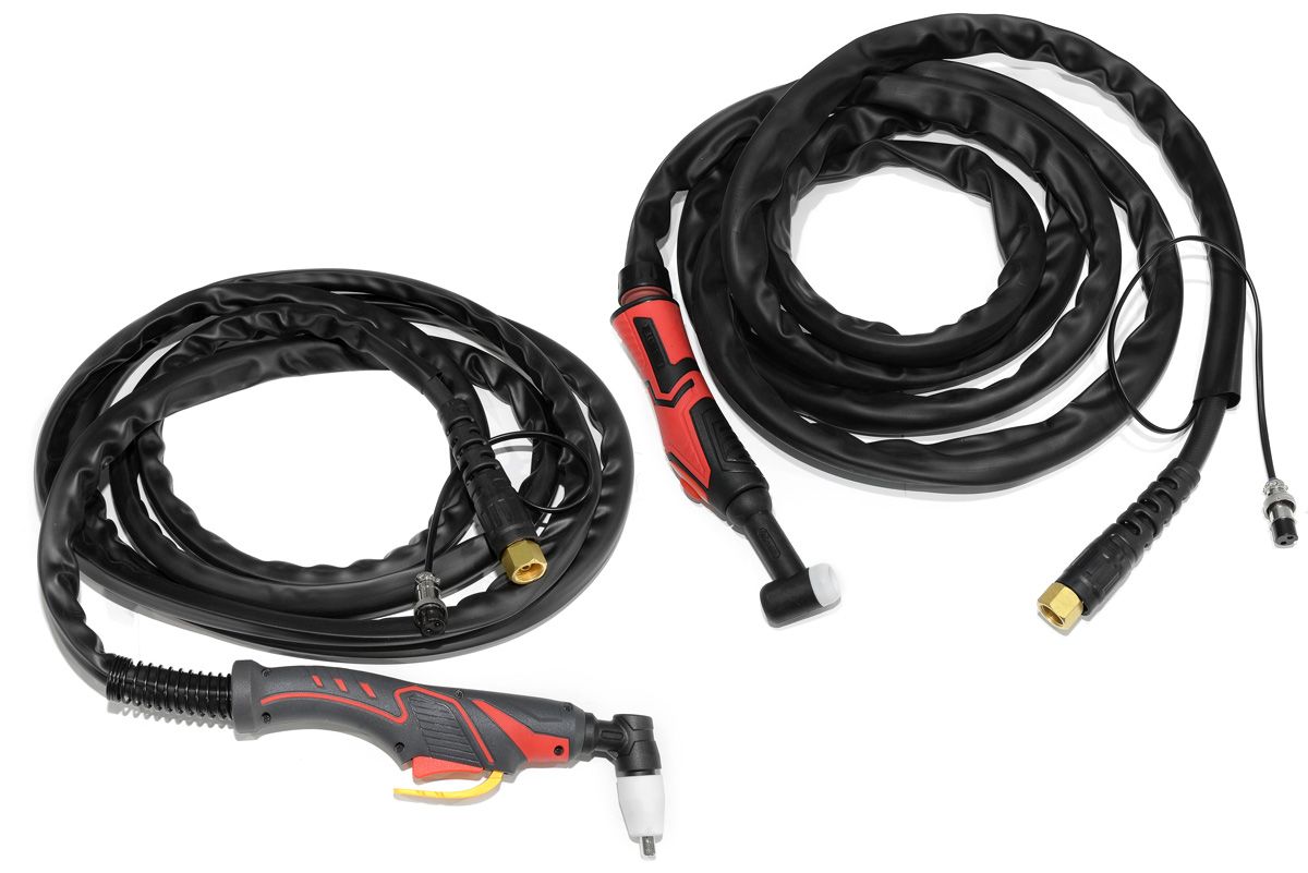 Режим Plasma CUT - В основе технологии плазменной резки лежит создание сжатой электрической дуги, которая формируется между электродом плазматрона и заготовкой. Для создания плазменной струи для резки, в электрическую дугу подается сжатый воздух (возможны и другие газы), который ионизируется и превращается в плазму с температурой порядка 25000 С0. Кроме того, выходящая из сопла плазматрона струя плазмы имеет сверхзвуковую скорость, поэтому при выполнении работы на оборудовании плазменной резки обязательно требуются средства защиты органов слуха (наушники или беруши).