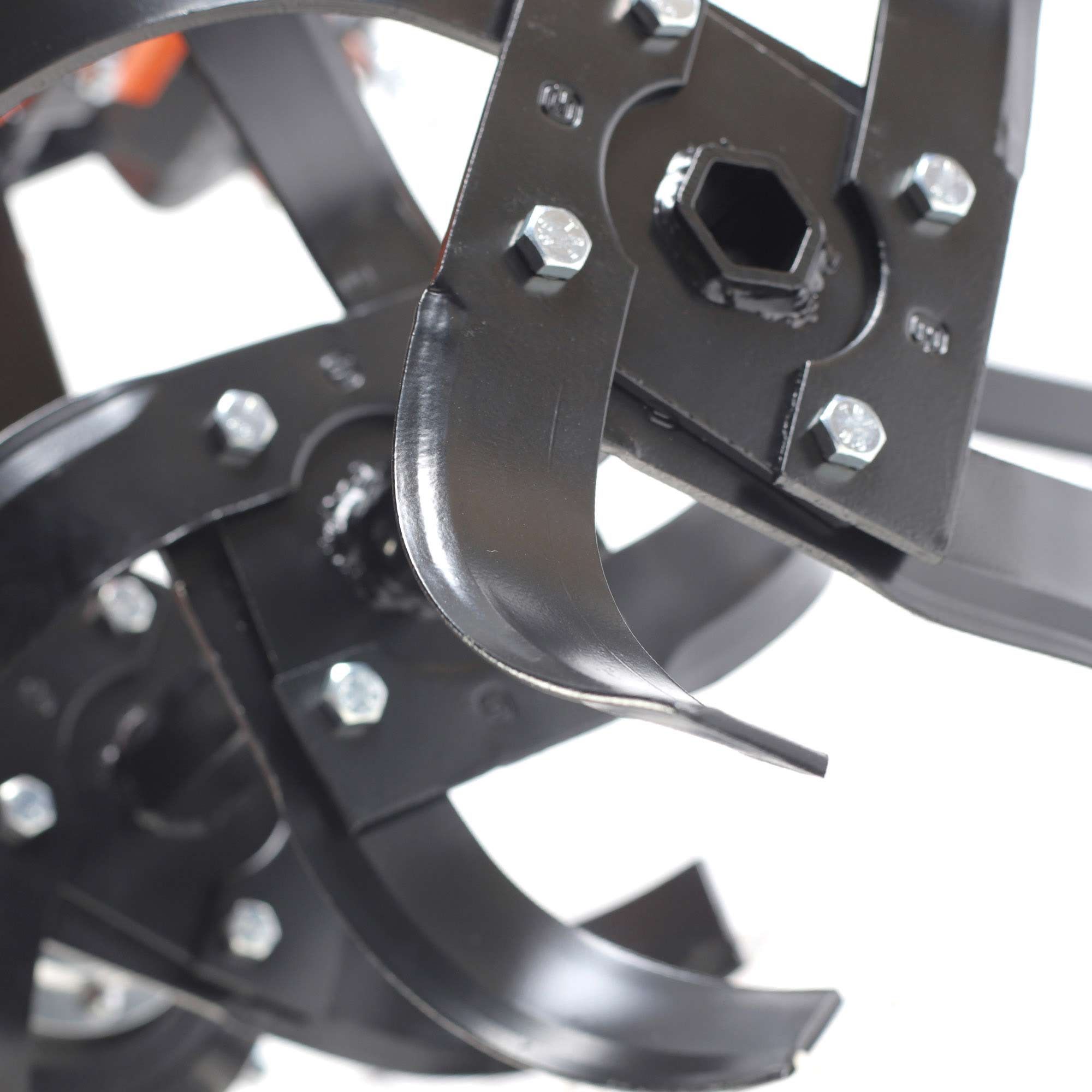 Калуга М X-Drive – модифицированный мощный бензиновый мотоблок с пониженной передачей и чугунным шестеренчато-цепным редуктором. Мотоблок оснащен четырехтактным двигателем с воздушным охлаждением. В комплектации закаленные фрезы, пневматические колеса с глубоким профилем протектора, сошник. Укрепленная рама с универсальной сцепкой позволяет установить дополнительное навесное оборудование или использовать вместе с тележкой. Первая пониженная передача улучшает проходимость мотоблока и позволяет без труда вспахивать тяжелые почвы. Кнопка включения, рукоятка газа и рычаг привода расположены на руле. Наклон руля регулируется.