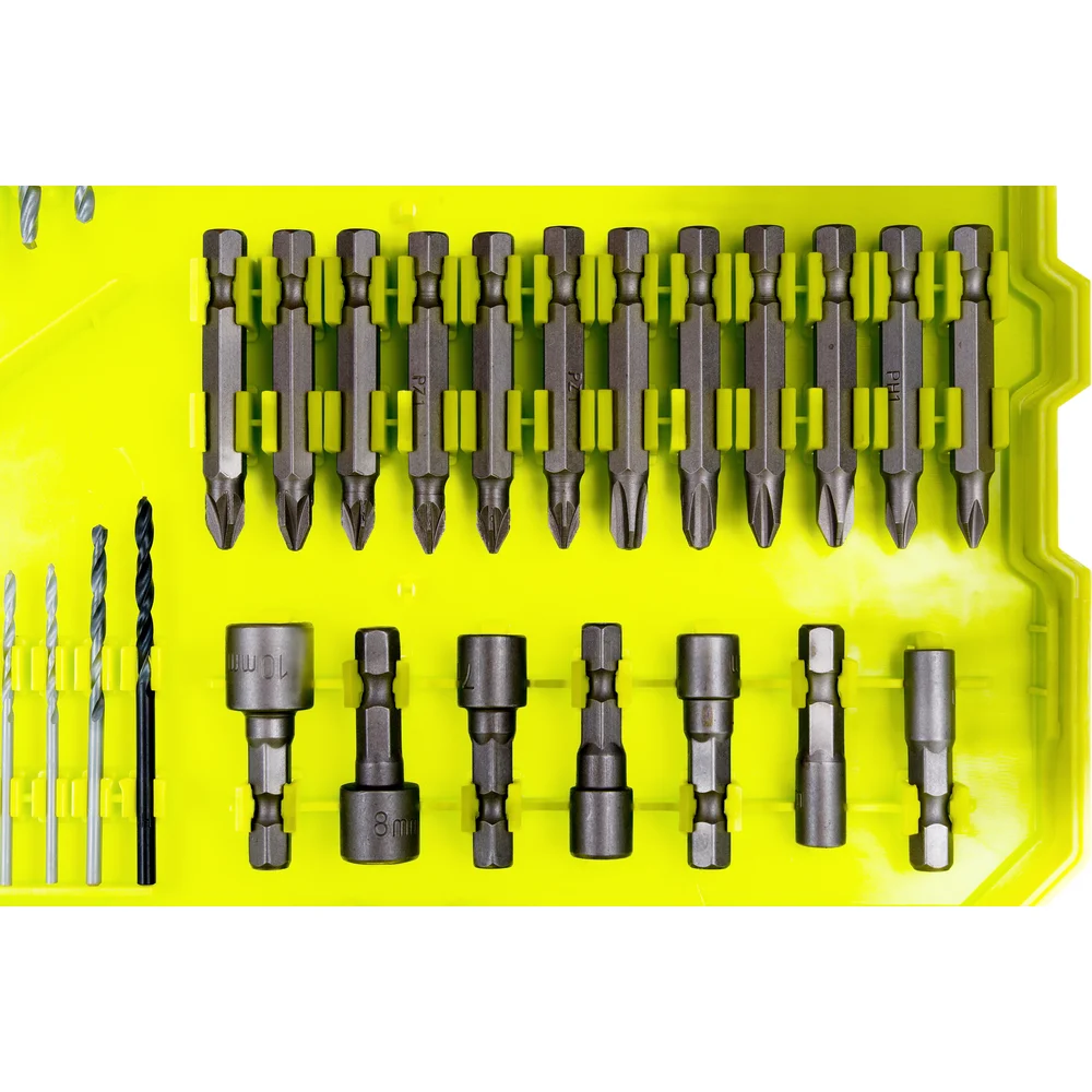 Набор комбинированный RAK127DDSD Ryobi 5132003792 предназначен для дрели и шуруповерта. Комплект включает оснастку для монтажа/демонтажа различных крепежных элементов и сверления отверстий в различных материалах. Набор поставляется в удобном и надежном для транспортировки и хранения кейсе. Количество предметов – 127 шт.
