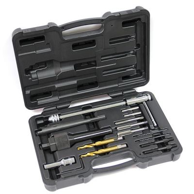 В комплекте: сверла различного диаметра, втулки, конусы, а также метчики для восстановления резьбы свечей накаливания..