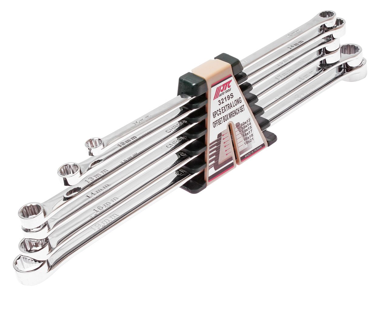 Набор накидных ключей JTC 10-21 мм идеально подходит для работы с двенадцатигранными крепежными элементами. Эти инструменты изготовлены из закаленной хром-молибденовой стали и покрыты хромом, что обеспечивает их повышенную прочность и долговечность.