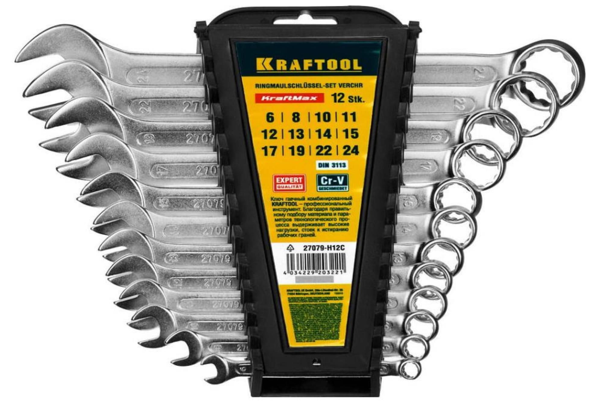 Набор комбинированных гаечных ключей KRAFTOOL (12 шт, 6 - 24 мм, артикул 27079-H12C)