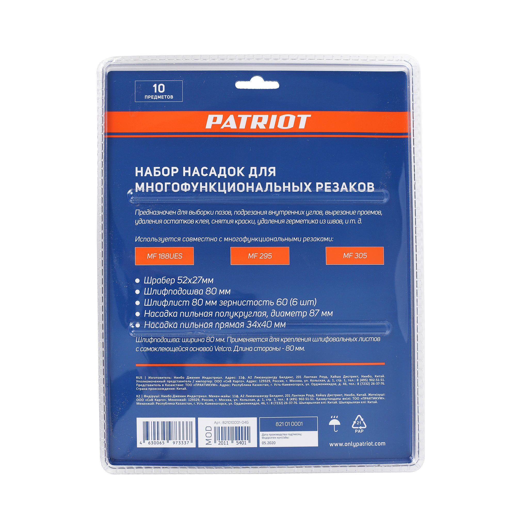 "Набор насадок для многофункционального резака применяется для обработки деревянных, металлических изделий, фанеры, пластика, гипсокартона, ламинированного ДСП, а также выборки пазов, подрезания внутренних углов, вырезание проемов, удаления остатков клея, снятия краски, удаления герметика из швов, шлифовки и зачистки различных материалов и т. д. Рекомендуем использовать с МФИ PATRIOT MF 188UES, MF 295, MF 305.