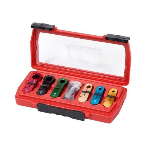 Набор размыкателей МАСТАК 105-01006C для топливной системы предназначен для демонтажа быстросъёмных фитингов топливных систем, систем кондиционирования и систем охлаждения масла автоматических трансмиссий.