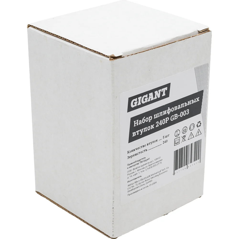 Набор шлифовальных втулок 240P Gigant GB-003 состоит из шести втулок диаметром 13, 19, 26, 38, 51 и 76 мм. С зернистостью абразива (электрокорунд) 240 грит, высота втулок 115 мм. Применяется на осцилляционных станках Gigant OSSJ-450 и OSBSJ-450. Втулки имеют тканную основу с нанесением электрокорунда. Шов встык без притупления абразивного слоя. Предназначены только для обработки древесины и древесных материалов.