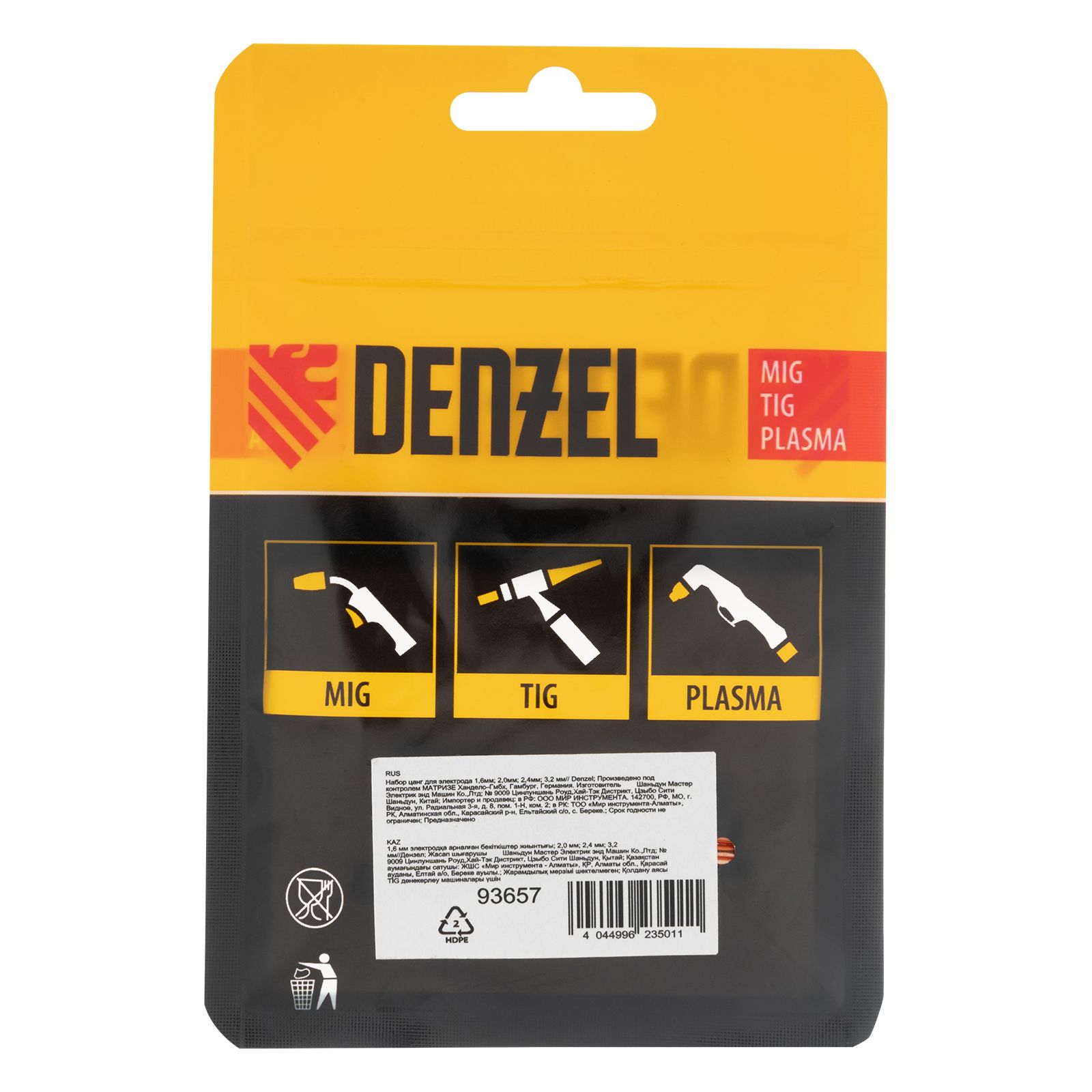 Набор цанг Denzel 93657 предназначен для удерживания в сопле сварочной горелки электродов диаметром 1,6, 2,0, 2,4 и 3,2 мм. Цанги совместимы с TIG-горелками Denzel 93643, 93644, а также с моделями других торговых марок с аналогичным посадочным разъемом.