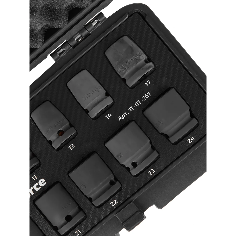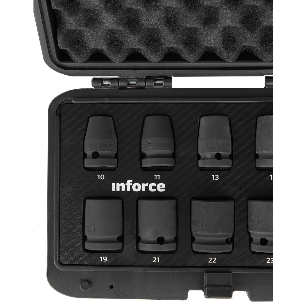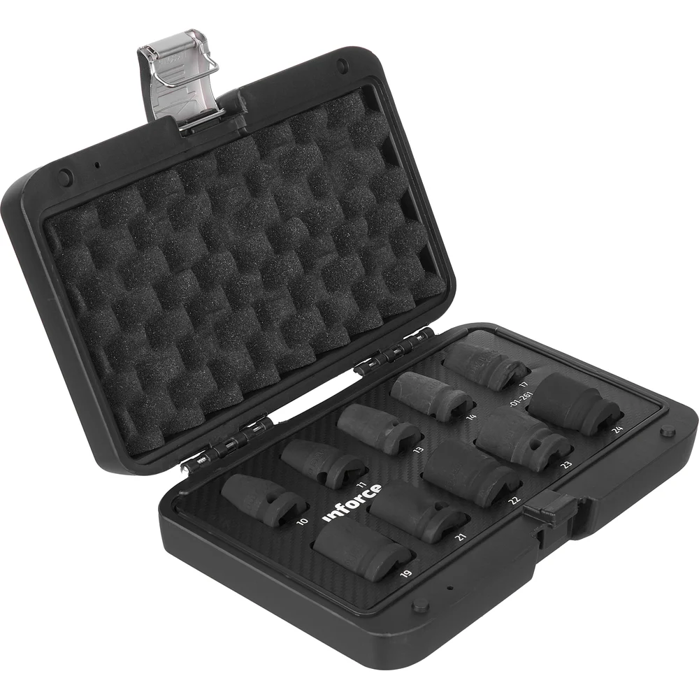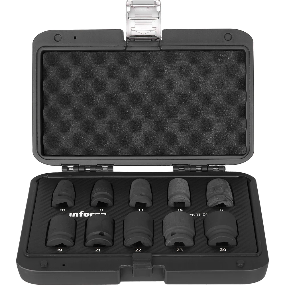 Набор торцевых ударных головок Inforce 11-01-261 предназначен для ударных гайковертов. Применяется для работы с крепежом. В наборе 10 предметов. Головки изготовлены из хром-молибденовой стали. Улучшенный профиль головок успешно справляется с крепежом, грани которого деформированы на 85%.