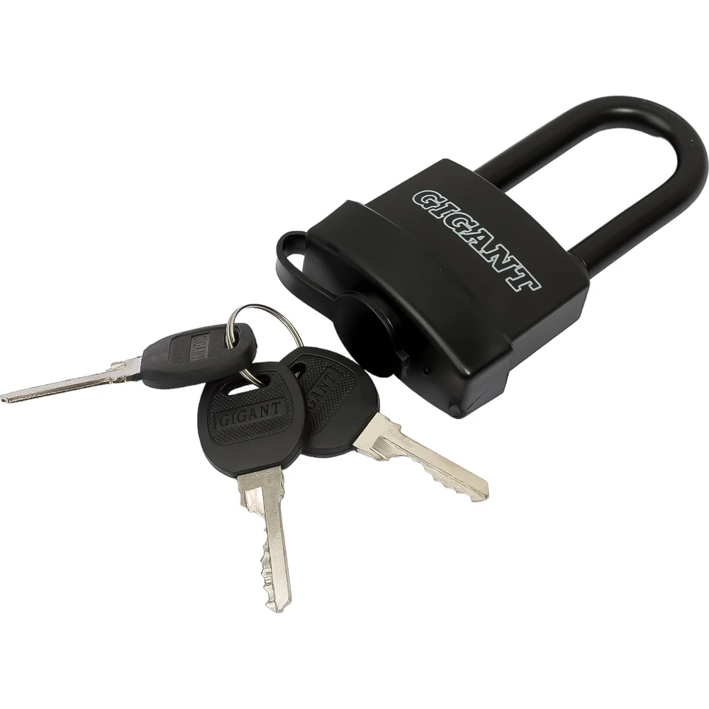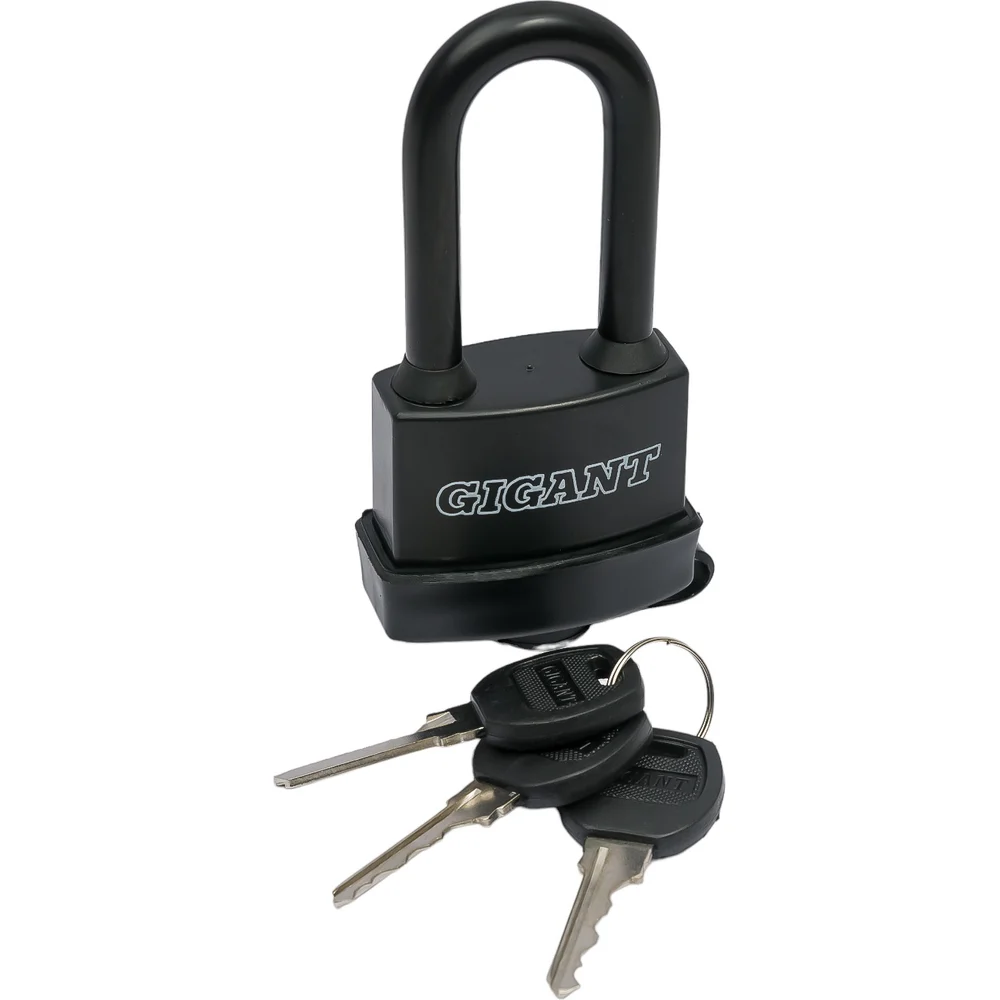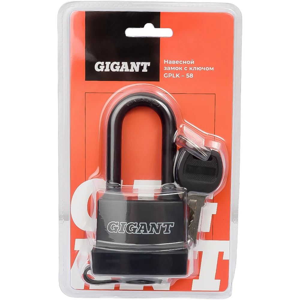 Навесной замок с ключом Gigant GPLK-58 всепогодное изделие с удлиненной дужкой. Все детали замка защищены от воздействия коррозии: корпус в резиновом чехле, дужка одета в силиконово-пластиковый несъёмный кожух, отверстие для ключа закрывается резиновой заглушкой. Латунный цилиндровый механизм обеспечит долгосрочную бесперебойную работу замку.