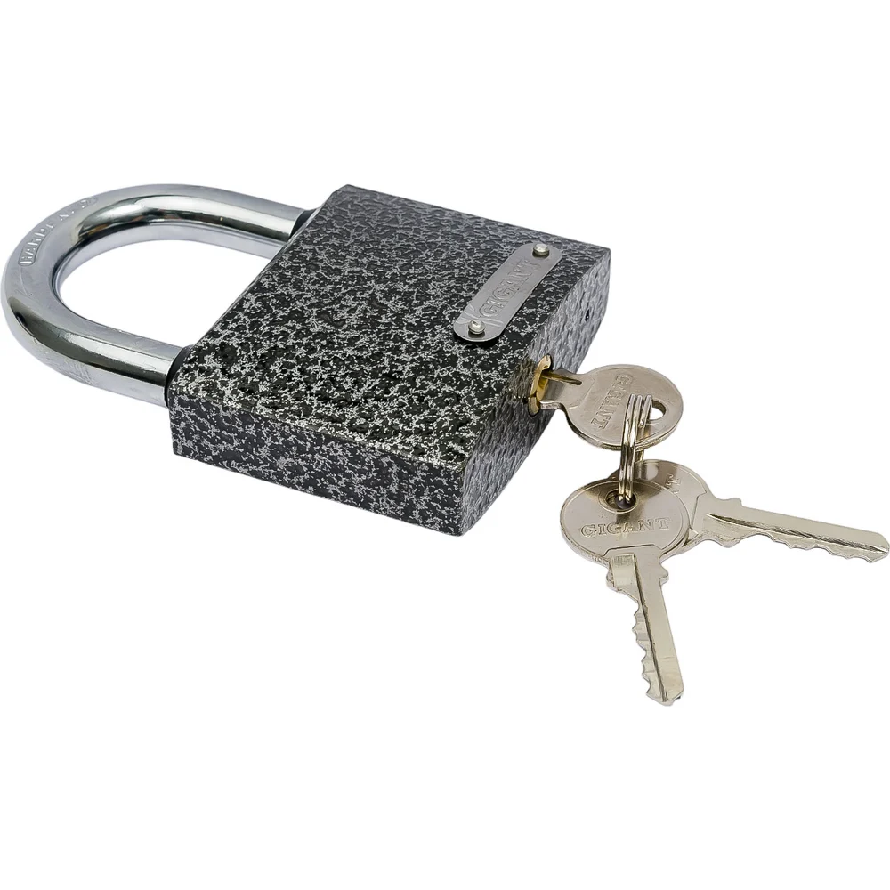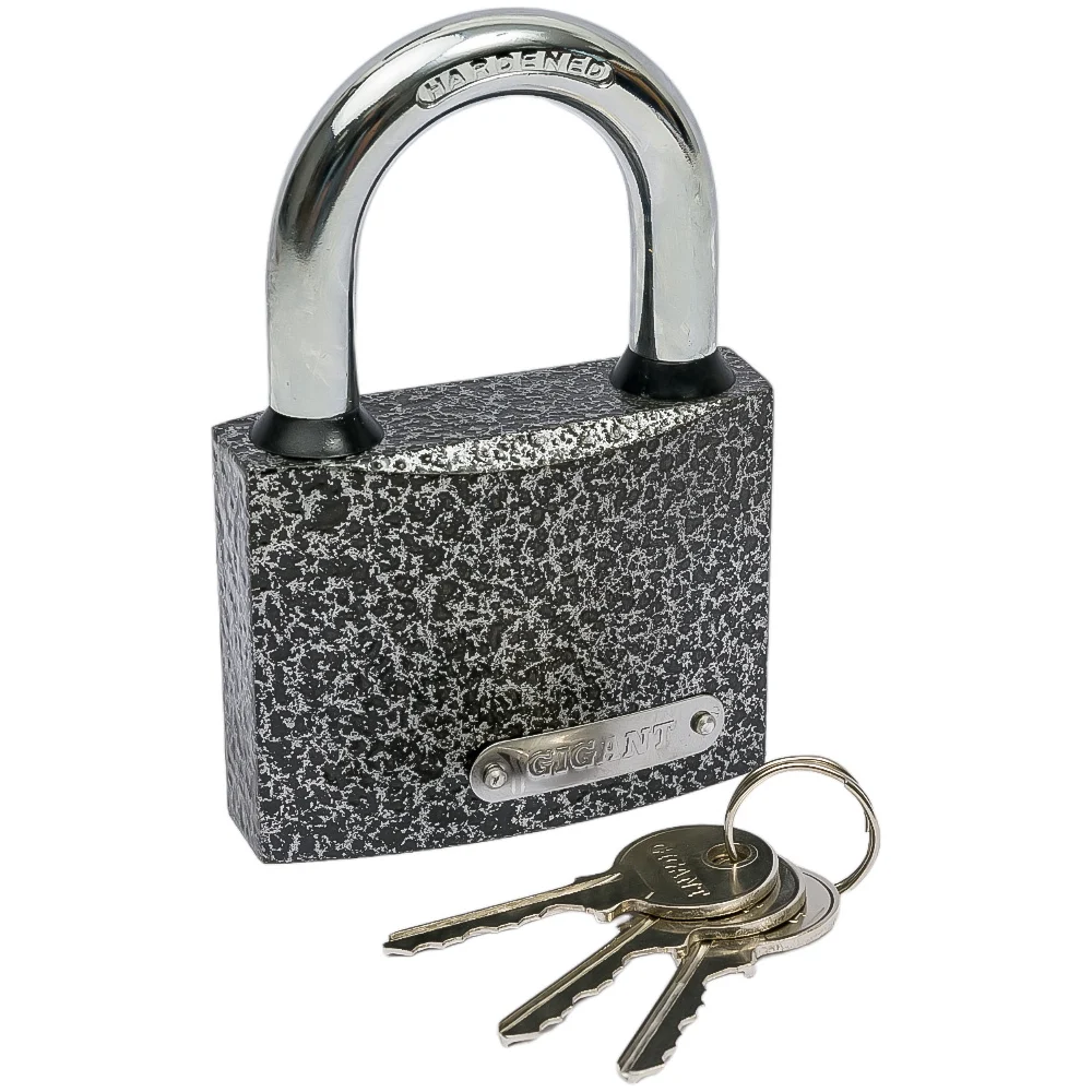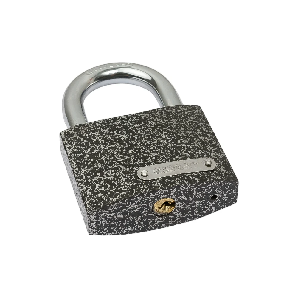 Навесной замок с ключом Gigant GPLK-75 имеет чугунный корпус с порошковым антикоррозийным покрытием и закаленной стальной дужкой. Места стыка дужки и замка защищены от попадания воды резиновыми кольцами.