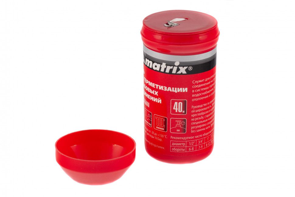 Универсальная нить Matrix 88893 длиной 80 м используется для уплотнения и герметизации резьбовых соединений. Подходит для металлических и пластиковых труб, используется для монтажа и ремонта систем отопления, газоснабжения, холодного и горячего водоснабжения. Оптимальна для труб, транспортирующих питьевую воду. Нить выдерживает давление газа до 8 бар и давление воды до 16 бар.
