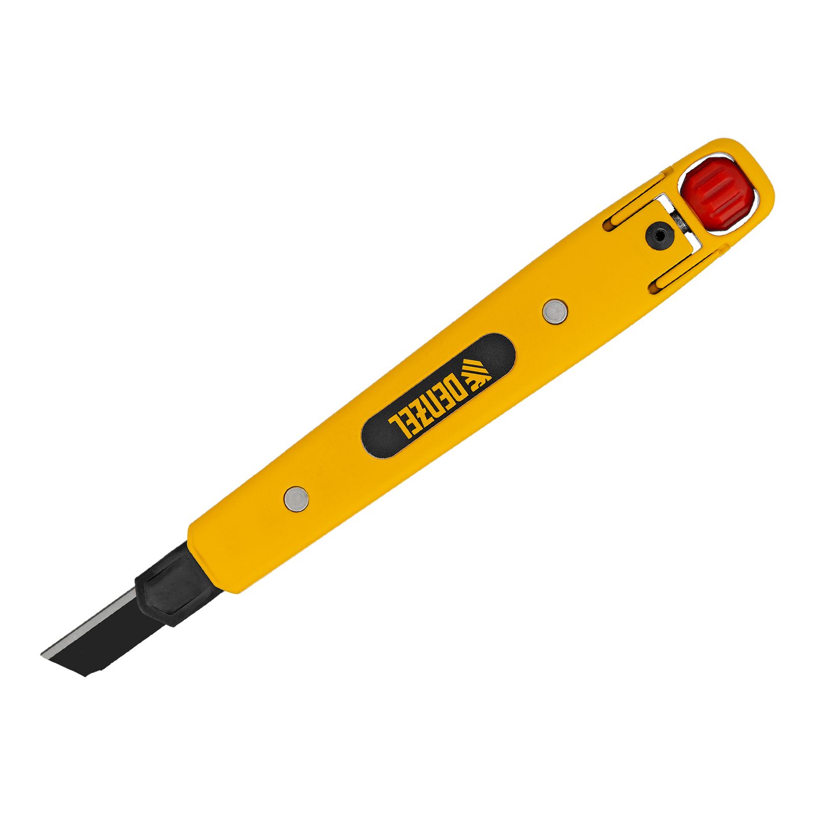 Нож Denzel 78901 выполнен в алюминиевом корпусе, оснащен сменным лезвием шириной 9 мм, изготовленным из стали SK4 по технологии UltraSharp, и торцевым зажимом. Острое выдвижное лезвие легко режет бумагу, обои, картон и другие листовые материалы. Нож будет полезен для проведения профессиональных ремонтных и отделочных работ, пригодится также в домашнем хозяйстве.