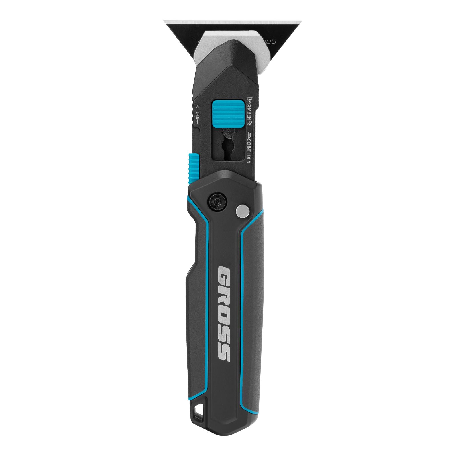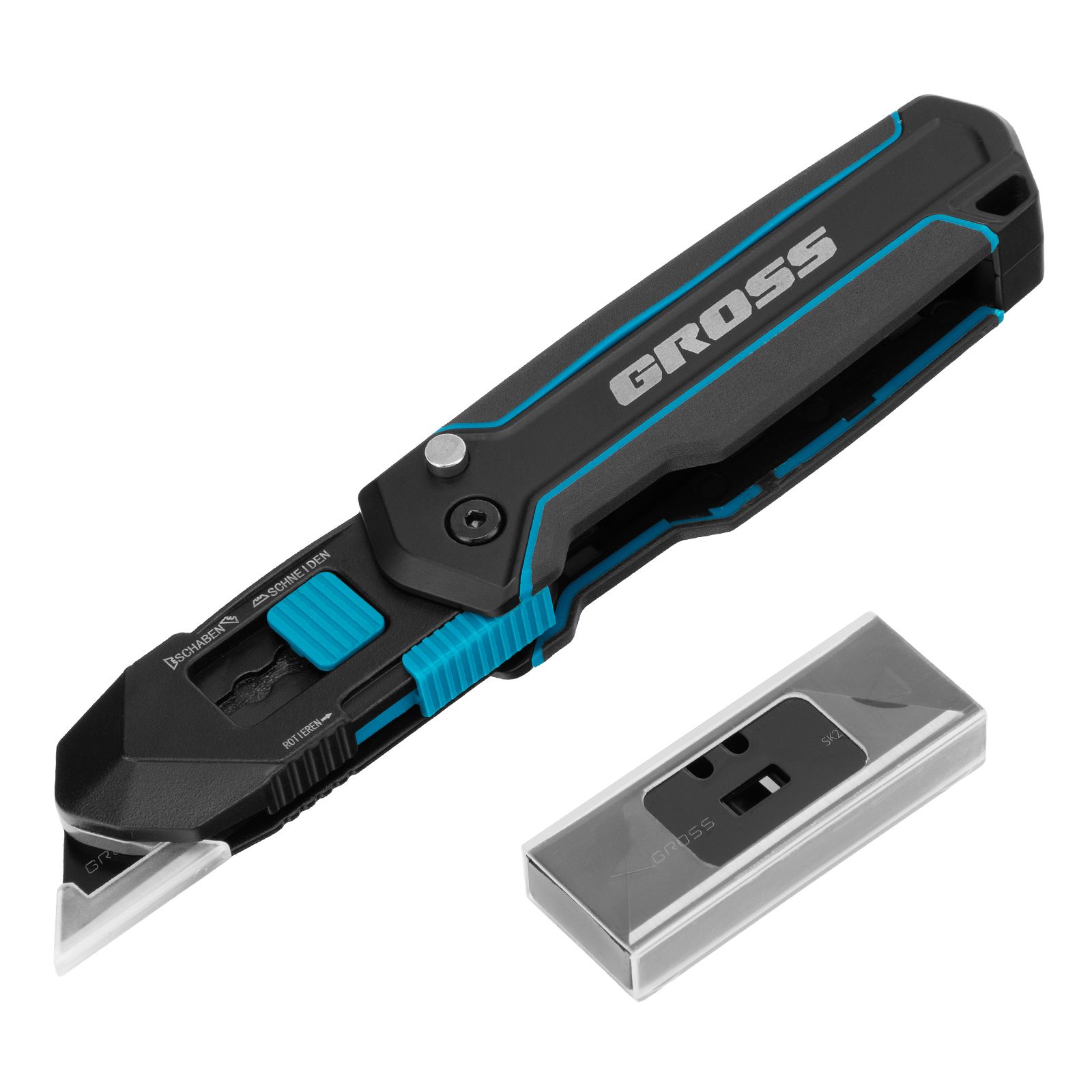 Нож-скребок складной, 19мм, сменное лезвие, SK2, 5 запас. лезвий, алюмин. корпус, клипса GROSS