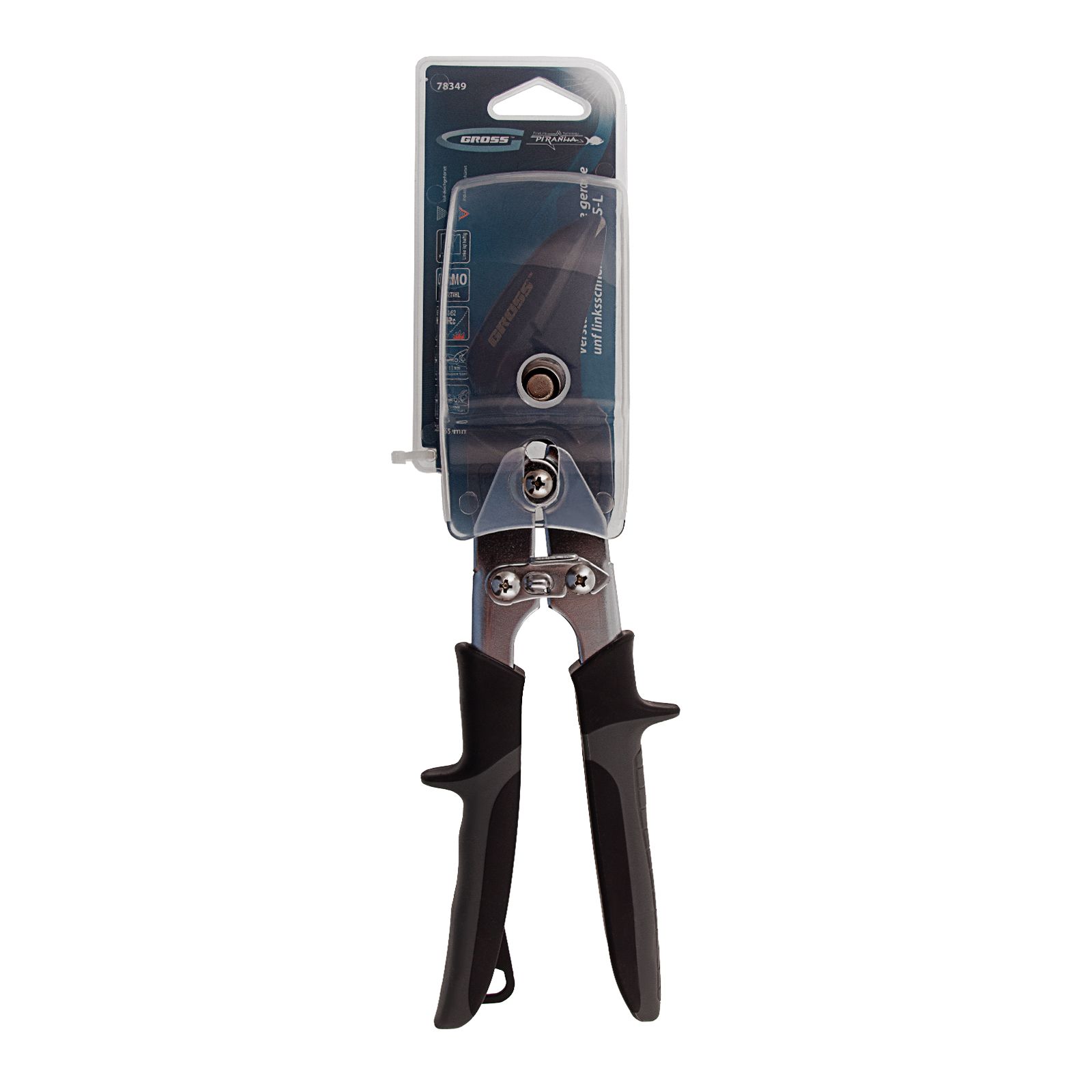 Усиленные ножницы по металлу Gross PIRANHA 78349 длиной 255 мм, из стали CrMo, с двухкомпонентными рукоятками, предназначены для прямого и криволинейного левого реза по листовым заготовкам. Режут металл разных марок толщиной до 1,2 мм, а также нержавеющую сталь толщиной до 0,94 мм. Двойной рычажный механизм уменьшает нагрузку на руку, передавая при этом значительное усилие. Ножницы используются при проведении строительных, монтажных работ, будут полезны и в быту.