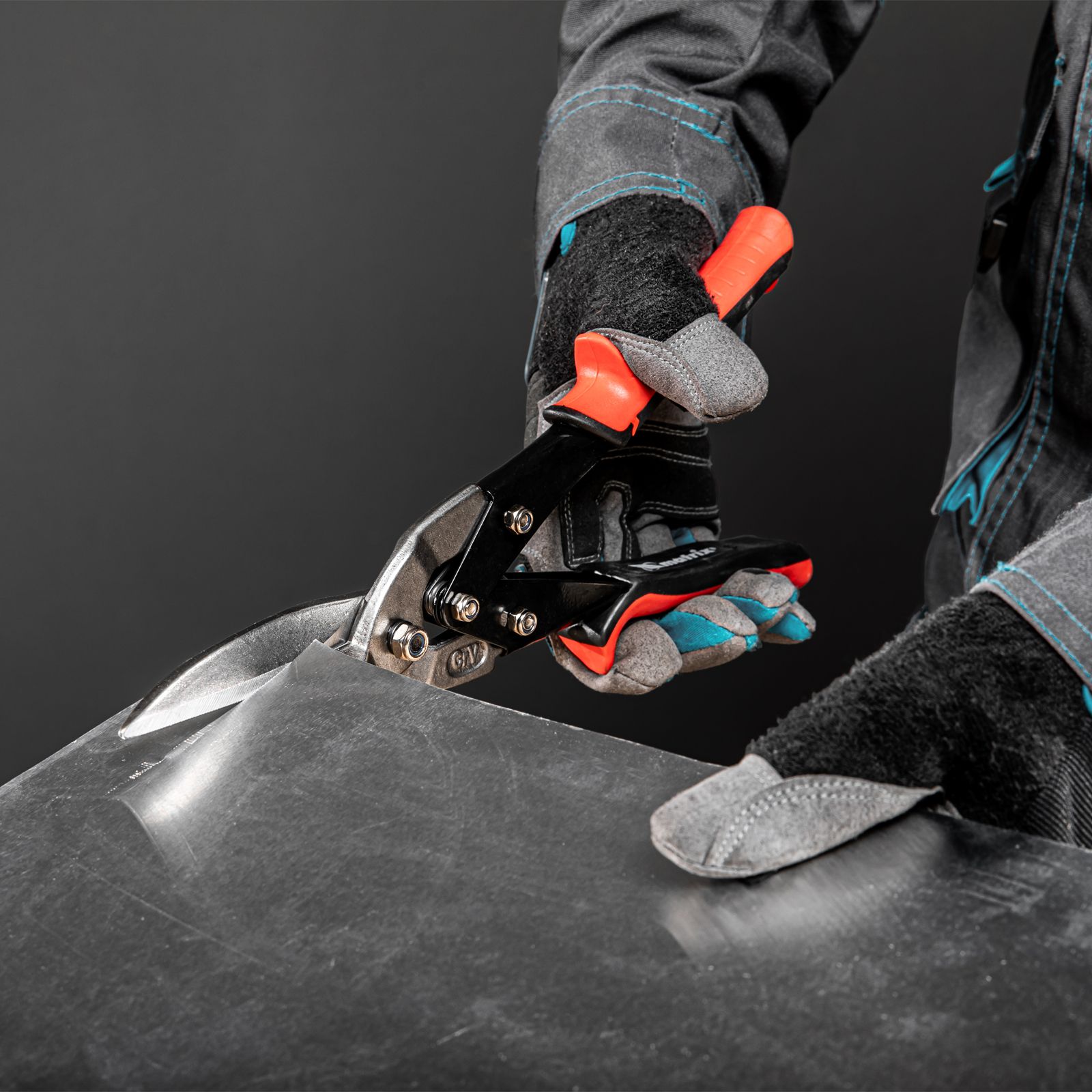 Удлиненные пряморежущие ножницы Matrix 78341 длиной 290 мм, с 2-компонентными обрезиненными рукоятками, предназначены для работ по листовому металлу толщиной до 0,8 мм. Двойной рычажный механизм обеспечивает максимальное усилие реза при минимальных усилиях мастера. Удлиненная рабочая часть позволяет быстрее справляться с поставленными задачами. Инструмент пригодится для бытового и полупрофессионального применения.