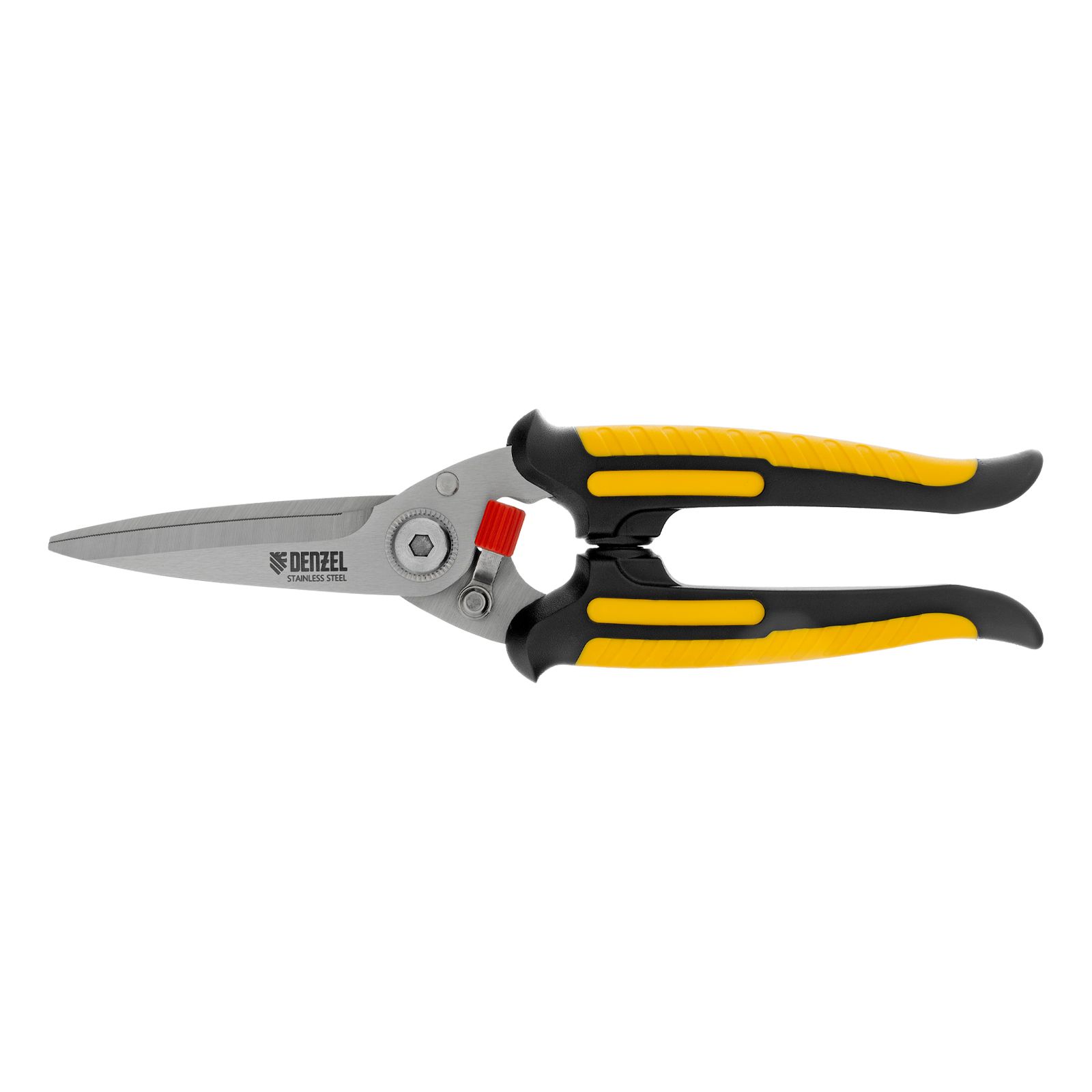 Универсальные ножницы Denzel 78319 длиной 200 мм — инструмент для разрезания тонкого металла и мягких материалов. Одно из лезвий имеет серрейторную (зубчатую) заточку, поэтому разрезаемый материал не выскальзывает из инструмента. Ножницы подходят для выполнения разнообразных работ: на даче помогут разрезать стальную сетку с небольшим диаметром проволоки, в походе — ветки или рыбу, во время мелкого ремонта или занятий творчеством — провода, кожу, резину, картон, бумажную лозу и другие материалы.