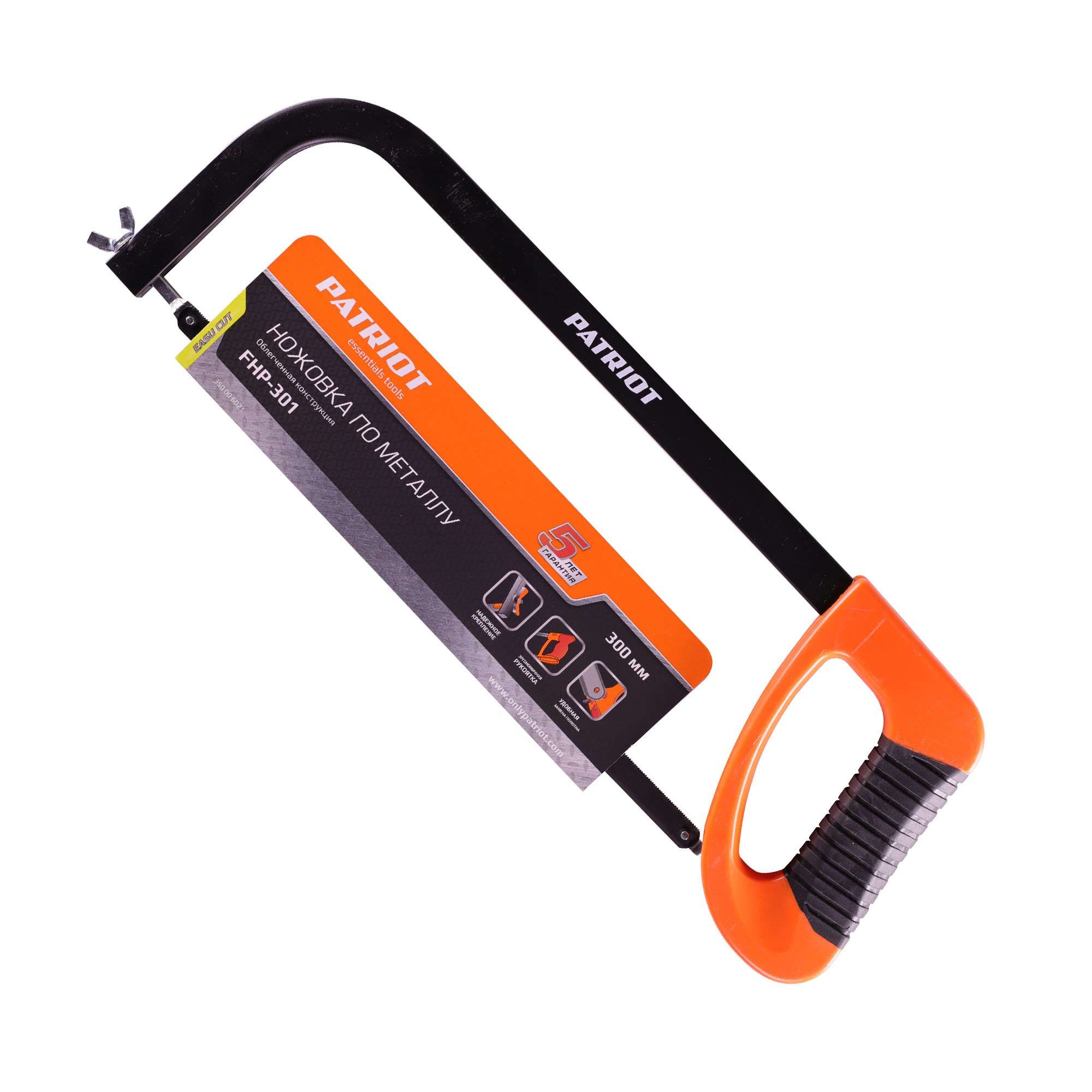 Ножовка PATRIOT FHP-301 для распиливания металлических деталей и заготовок. На стальной раме присутствует удобная прорезиненная рукоять. Поддерживает сменные полотна HSB-18 и HSB-24.