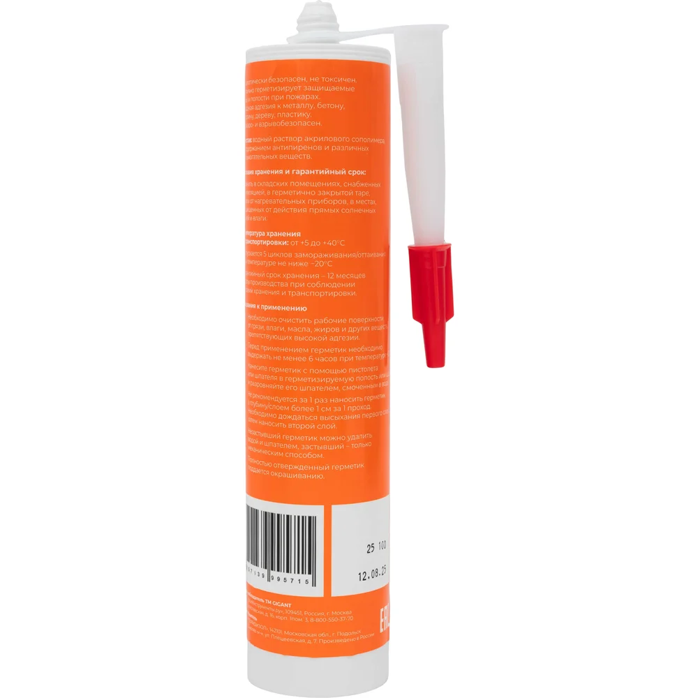 Терморасширяющийся огнезащитный акриловый однокомпонентный герметик Gigant картридж 400 гр GFS-01 предназначен для обработки стыков и швов при строительстве, установки противопожарных дверей и вентиляционных систем, а также заполнения деформационных и конструкционных швов. Он имеет высокую адгезию с различными поверхностями – металлическими, бетонными, кирпичными, деревянными, пластиковыми – поэтому надежно герметизирует швы и полости во время пожара. Гарантируется огнестойкость до 240 минут. Назначение: Огнестойкая герметизация стыков и швов сборных строительных конструкций; Огнестойкая герметизация швов при монтаже огнестойких дверей, перегородок, систем вентиляции и дымоудаления; Огнестойкая герметизация деформационных и конструкционных швов.
