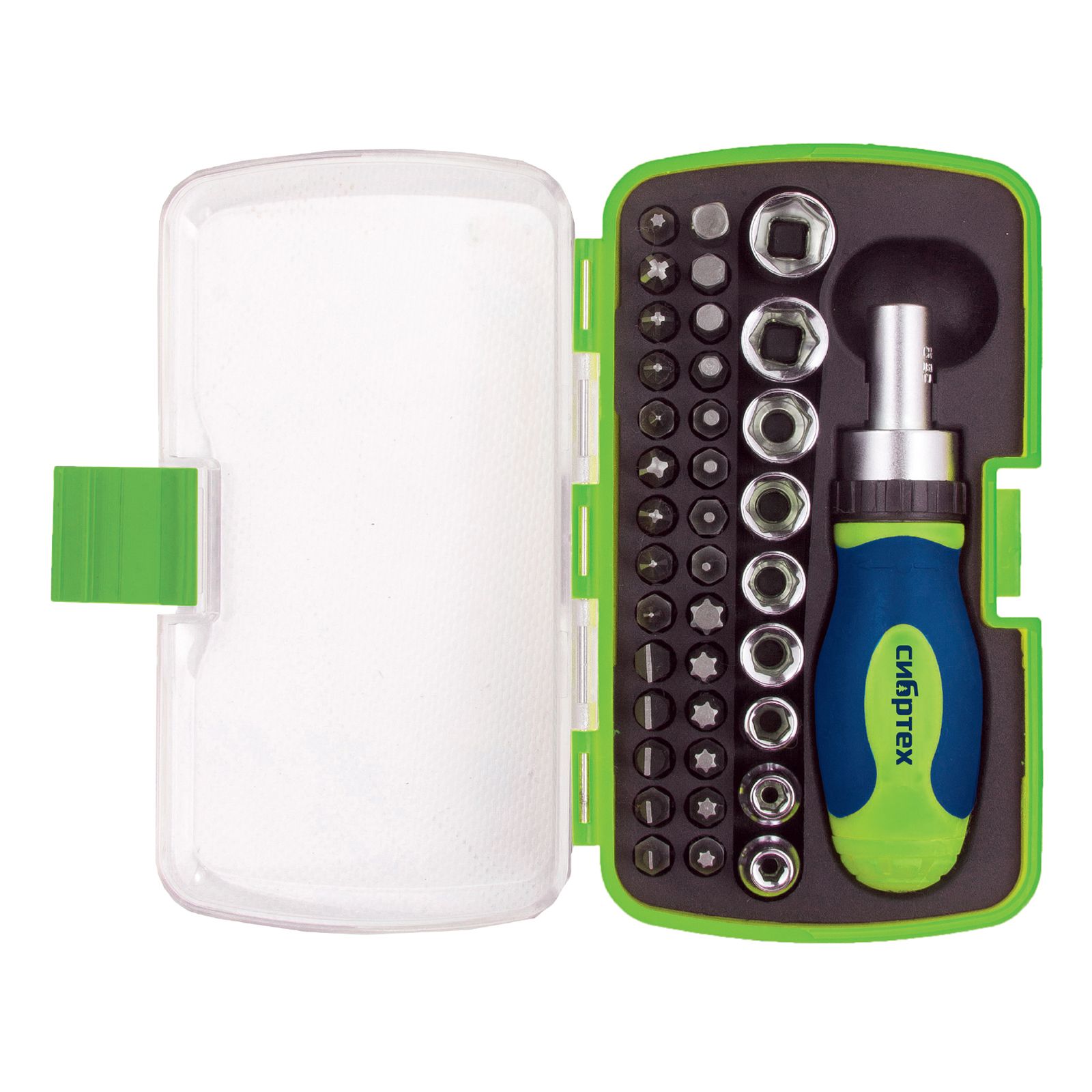 Отвертка ревер. + биты, 41 пред., PH+PZ+SL+H+T, CrV, 2к рукоятка Сибртех