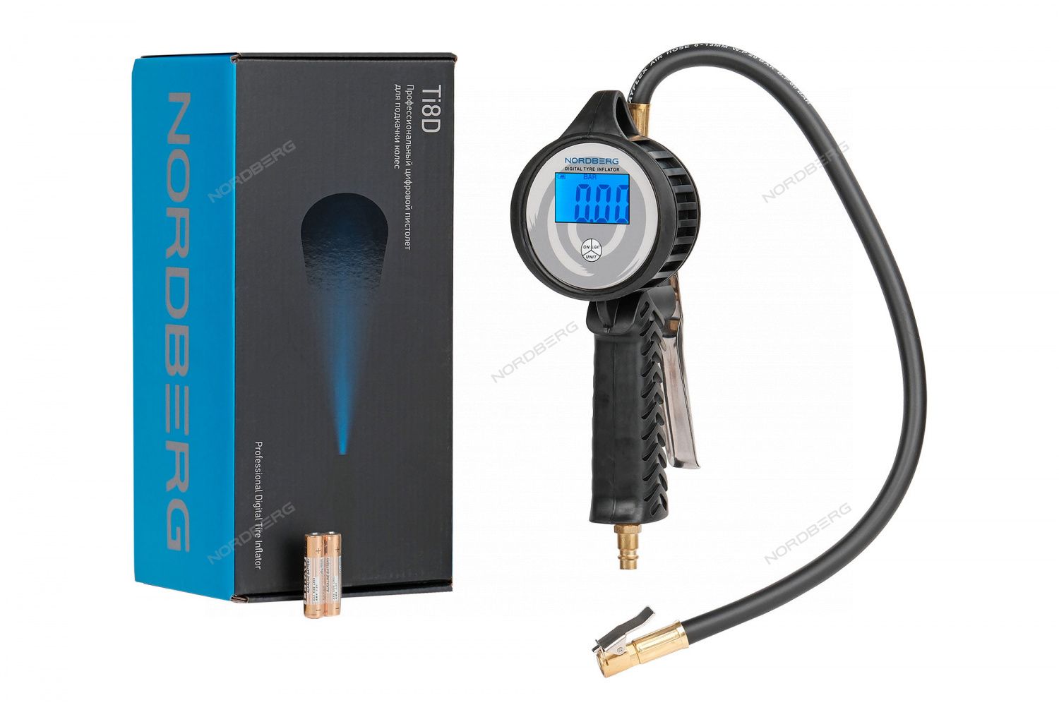 Пистолет профессиональный для подкачки колес, цифровой, обрезиненный, для легковых автомобилей NORDBERG Ti8D