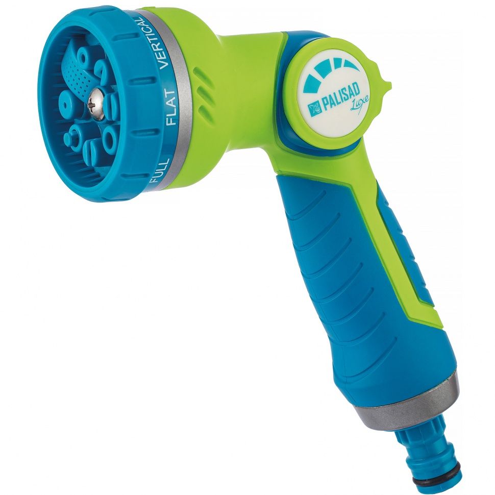 Регулируемый пистолет-распылитель Palisad LUXE 65145 серии ERGO с 8 режимами работы присоединяется к любым поливочным системам ТМ Palisad для осуществления ручного орошения растений на участке, а также мытья дорожек и садовых принадлежностей. Он поможет садоводам и работникам коммунальных служб оросить газон, растения на участке и в парке и выполнить другие задачи. 8 режимов распыления позволят выбрать необходимый тип струи для полива различных растений.