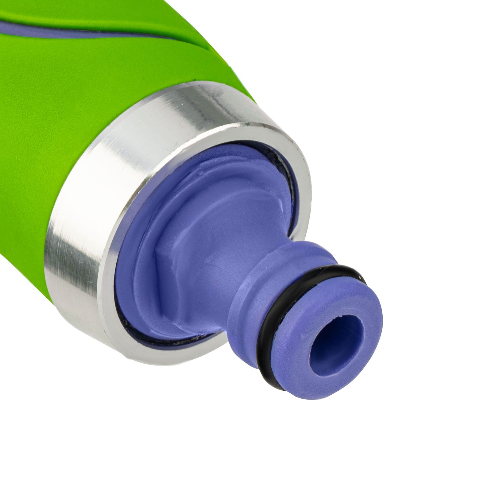 - 5-ступенчатый фиксатор курка позволяет выбрать оптимальный режим распыления (жесткая струя, режимы «туман» и конусный), а также осуществлять непрерывный полив и полное прекращение водоподачи.