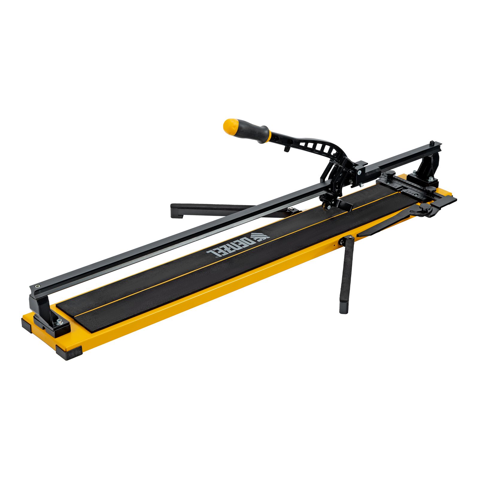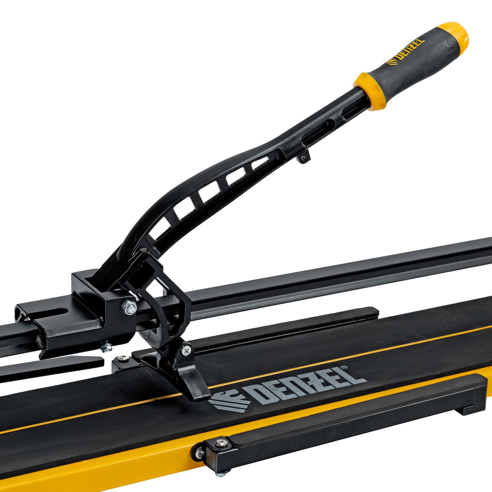 Ручной плиткорез Denzel 877018 с рельсовой направляющей и стальной станиной, с кареткой на подшипниках и усиленной рукояткой-пеналом, предназначен для прямой и диагональной резки керамической плитки и керамогранита длиной до 1000 мм и толщиной до 16 мм. Раздвижные упоры упрощают работу с плиткой большого размера. Инструмент используется для проведения отделочных работ.