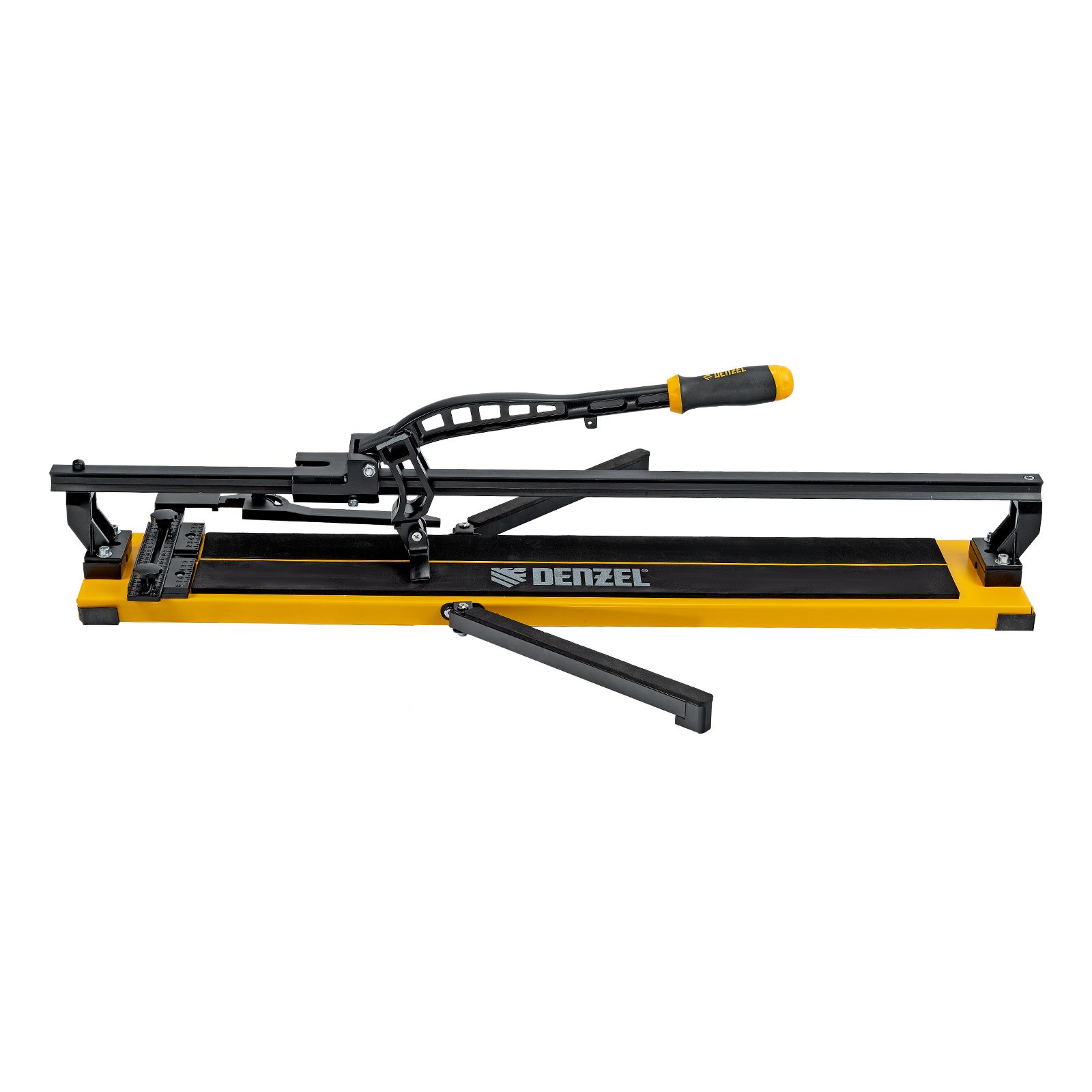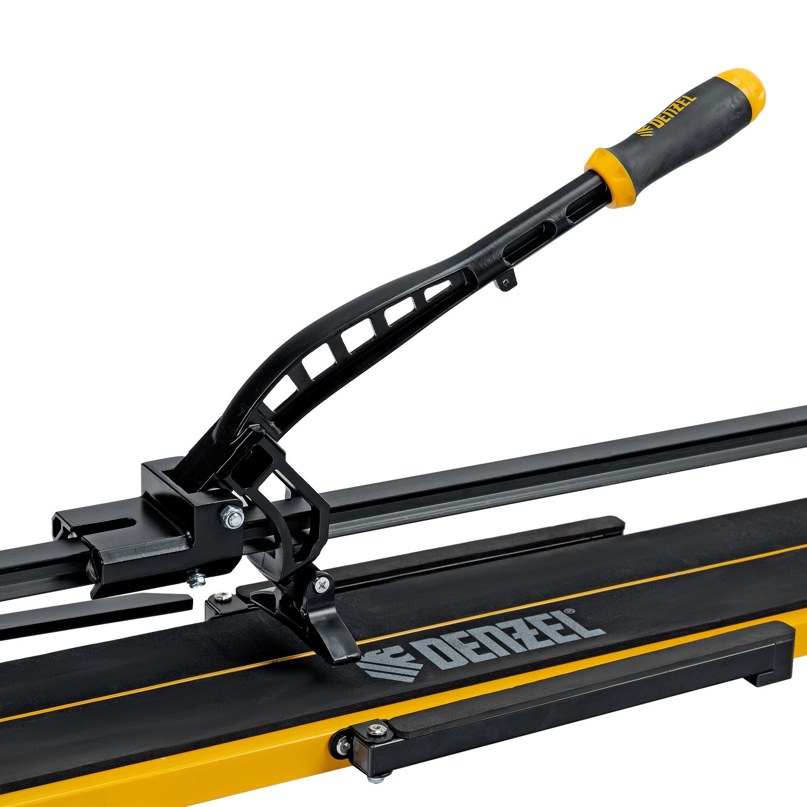 Ручной плиткорез Denzel 877016 с рельсовой направляющей и стальной станиной, с кареткой на подшипниках и усиленной рукояткой-пеналом, предназначен для прямой и диагональной резки керамической плитки и керамогранита длиной до 800 мм и толщиной до 16 мм. Раздвижные упоры упрощают работу с плиткой большого размера. Инструмент используется для проведения отделочных работ.