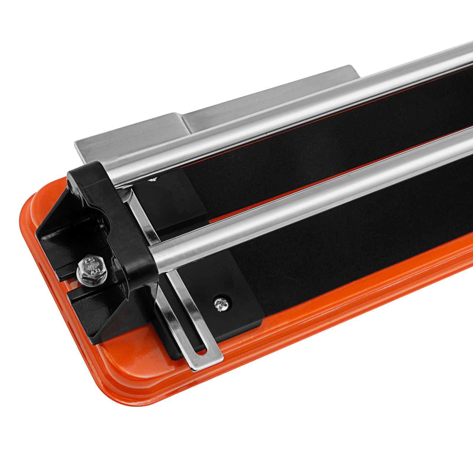 - Точность выполняемых работ — металлическая линейка-угольник облегчает позиционирование плитки на станине, твердосплавный режущий ролик обеспечивает аккуратный рез.