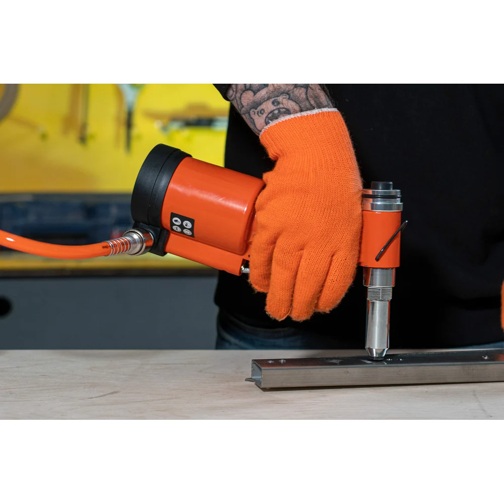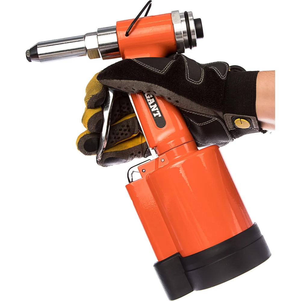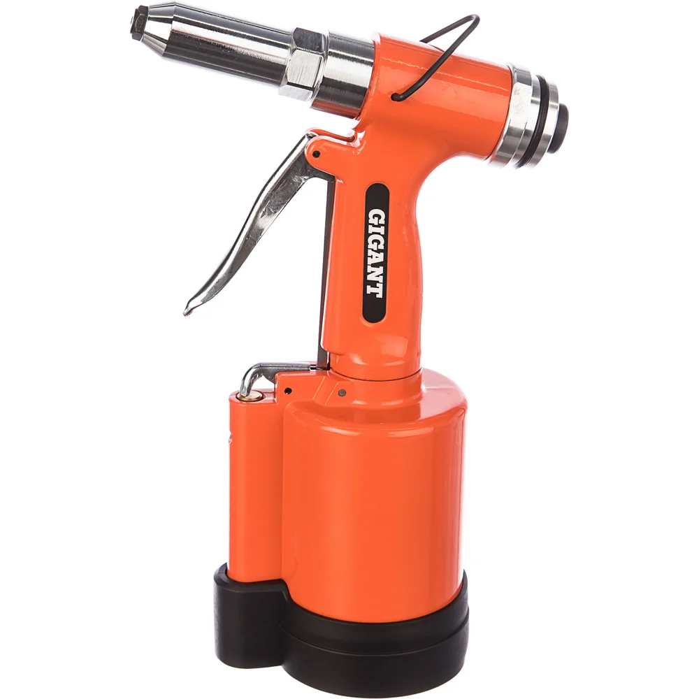Пневматический заклепочник Gigant P70 пригодится для крепления листового металла при монтаже различных конструкций. Работает со стальными заклепками размером до 3/16" (макс. диаметр оправки - 1/8"). Ударопрочность. Прочный металлический корпус устойчив к механическим повреждениям. Комфорт. Инструмент оснащен удобной рукояткой и пусковым рычажком, что обеспечивает комфортную работу.