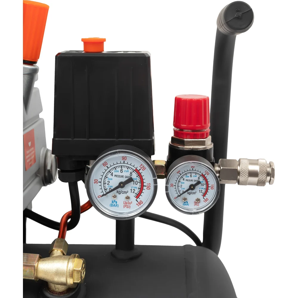 Поршневой масляный компрессор Gigant LAS 24/1500K поставляется с набором пневмоинструмента в комплекте. Компрессор используется совместно с пистолетами для продувки, краскораспылителями, пневмовинтовертами, отбойными молотками, кузовными пилами, пистолетами для подкачки шин и другими инструментами пневматического типа. Модель оснащена вместительным ресивером, что обеспечивает возможность продолжительной работы с высокой эффективностью. Специальная рукоятка предназначена для легкой и плавной регулировки величины давления. Контрольное окно картера позволяет оператору отследить уровень масла и своевременно произвести его замену. Материалы: Цилиндр: чугун; Поршень: алюминиевый сплав; Голова: алюминиевый сплав; Трубки: алюминий; Обмотка асинхронного двигателя: алюминий.