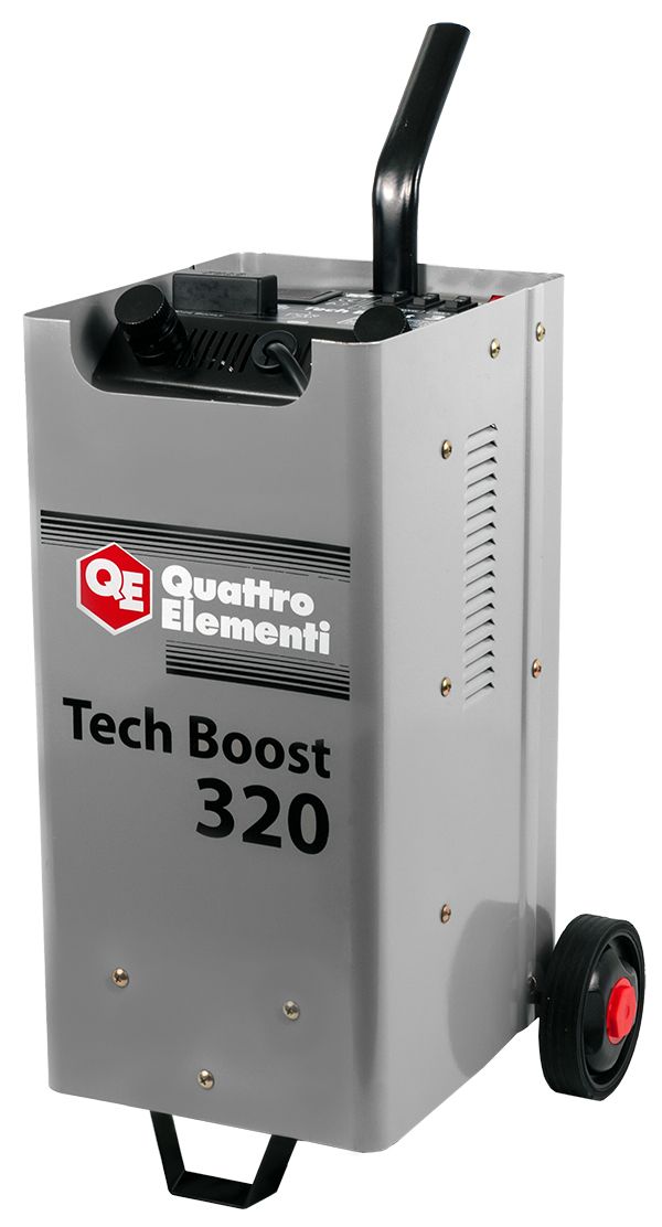 Пуско-зарядное устройство Tech Boost 320 предназначено для заряда свинцово-кислотных АКБ и помощи в запуске двигателя. Напряжение батареи 12 и 24 В. Его отличительные особенности: цифровой диплей, 4 режима заряда, отсек для хранения проводов, колеса для транспортировки.
