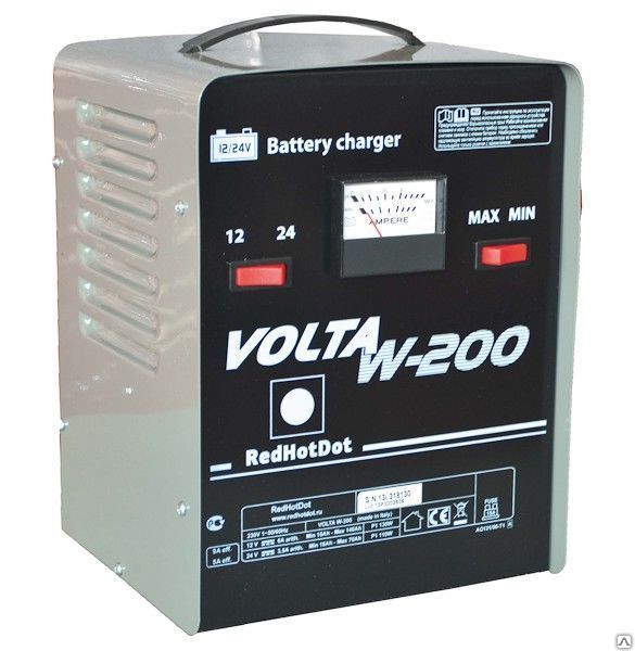 Зарядное устройство для свинцовых аккумуляторов типа WET и AGM с защитой от перегрузки, инверсии полярности и короткого замыкания в выходной цепи. Зарядное устройство с регулируемым зарядном током предназначено для зарядки 12/24 В аккумуляторов с емкостью 20-200 Ачас.