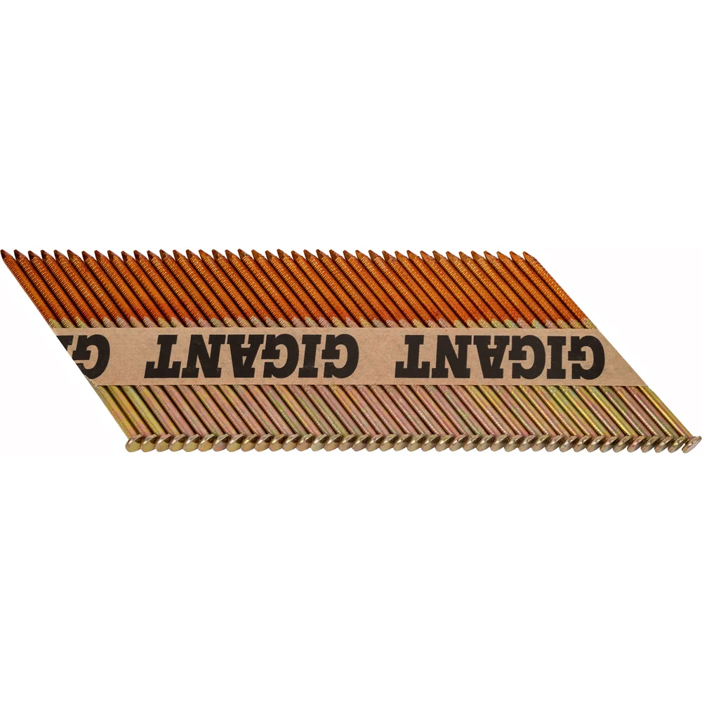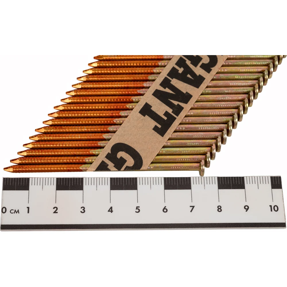 Реечный гвоздь по дереву Gigant GGR-75-3RH используется в строительстве (сборке стропильных систем, деревянных каркасов), упаковочных работах и иных сферах. Рифленый стержень обеспечивает надежное сцепление с материалом, предотвращая выскальзывание. Упаковка из 2000 штук делает их экономичным выбором для крупных проектов. Гальваническое покрытие защищает гвозди от коррозии и позволяет использовать их даже в агрессивных средах. Расположены под углом 34 градуса, это позволяет не задевать шляпку соседнего гвоздя при монтаже и увеличивает срок службы пистолета. В комплекте 50 кассет на бумаге, в каждой кассете по 40 гвоздей. Могут использоваться с газовыми или аккумуляторными пистолетами большинства производителей, представленных на рынке (Hybest, Fubag, Зубр, Metabo и др.). Кольцевая накатка обеспечивает повышенное сцепление с древесиной. Бумажная основа и клей подобраны таким образом, что кассеты не разбиваются при падении, а при монтаже бумага полностью отделяется с гвоздем и не застревает в обойме.