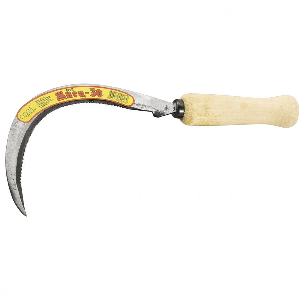 Серп с зубчатым полотном АРТИ «Жнец - 30» 64102, ширина захвата 170 мм, рассчитан на срезание злаковых культур. Рабочее полотно оснащено зубцами для повышения эффективности реза, поэтому серп легко справляется с жесткими и сухими стеблями.