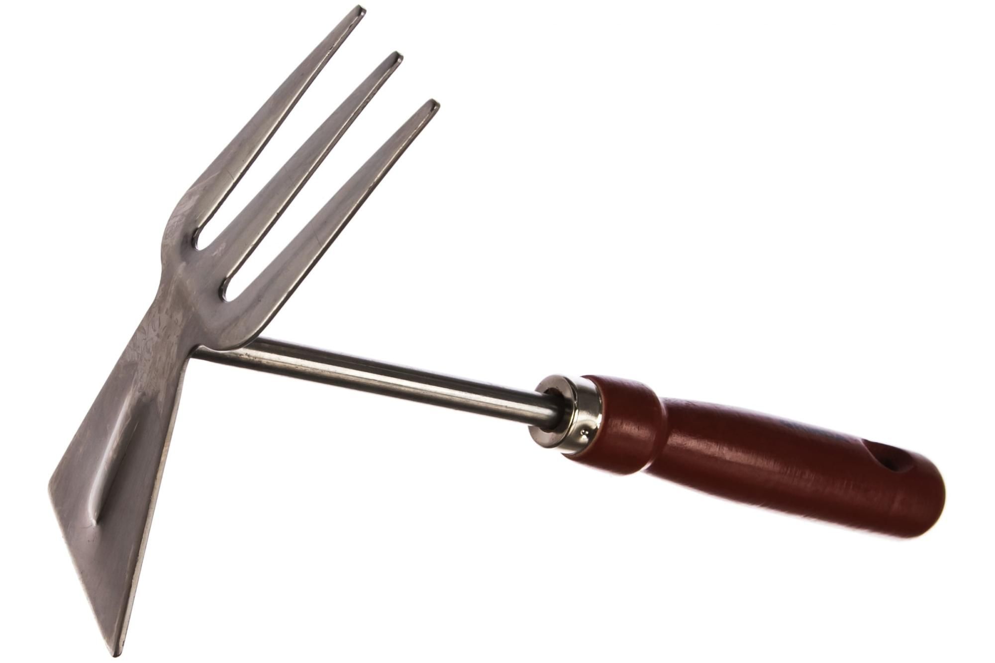 Садовая мотыжка GRINDA 260 мм, 3 зубца, нержавеющая сталь, деревянная ручка прямое лезвие 8-421135