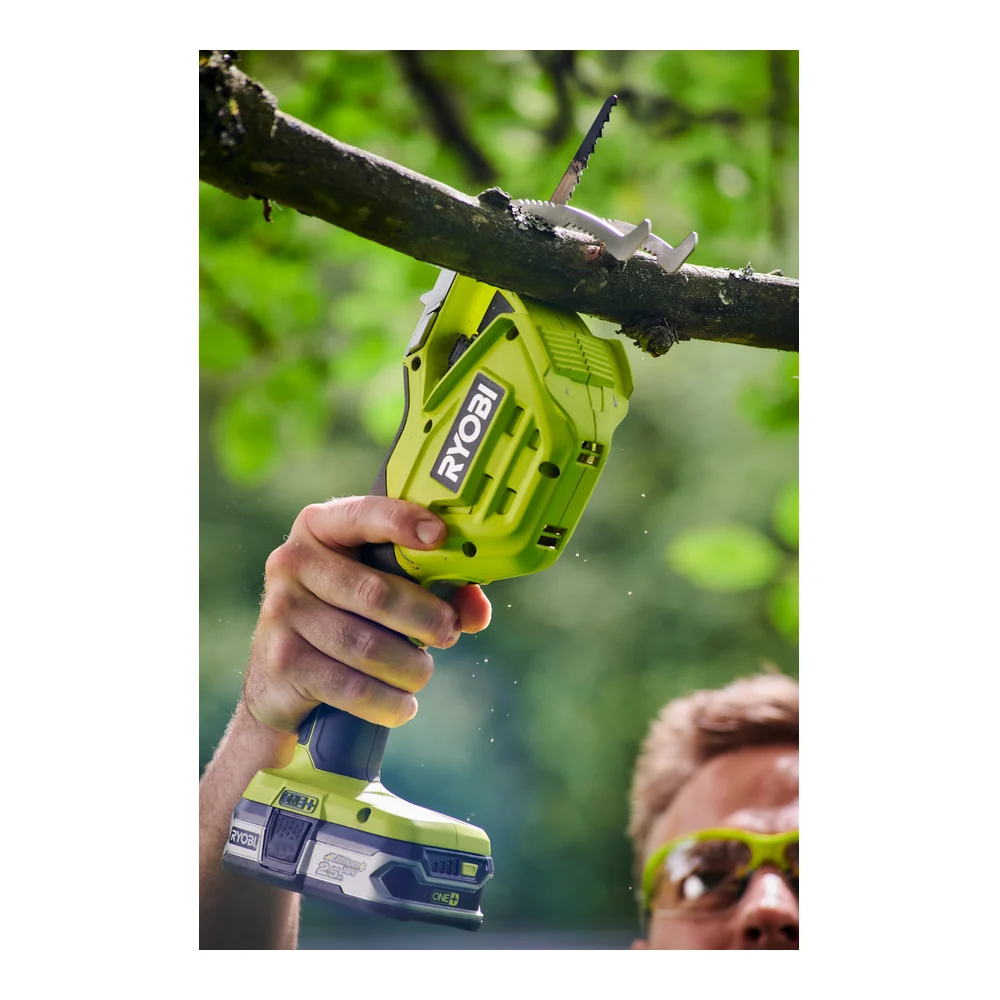 Садовая сабельная пила Ryobi ONE+ RY18PSA-0 5133004594 пригодится для ухода за деревьями и кустарниками. Благодаря режущей способности в 80 мм подходит для тонких и средних ветвей. Встроенный упор препятствует потере контроля, даже когда ветвь отпилена. Обрезиненная рукоять обеспечивает надежный хват.