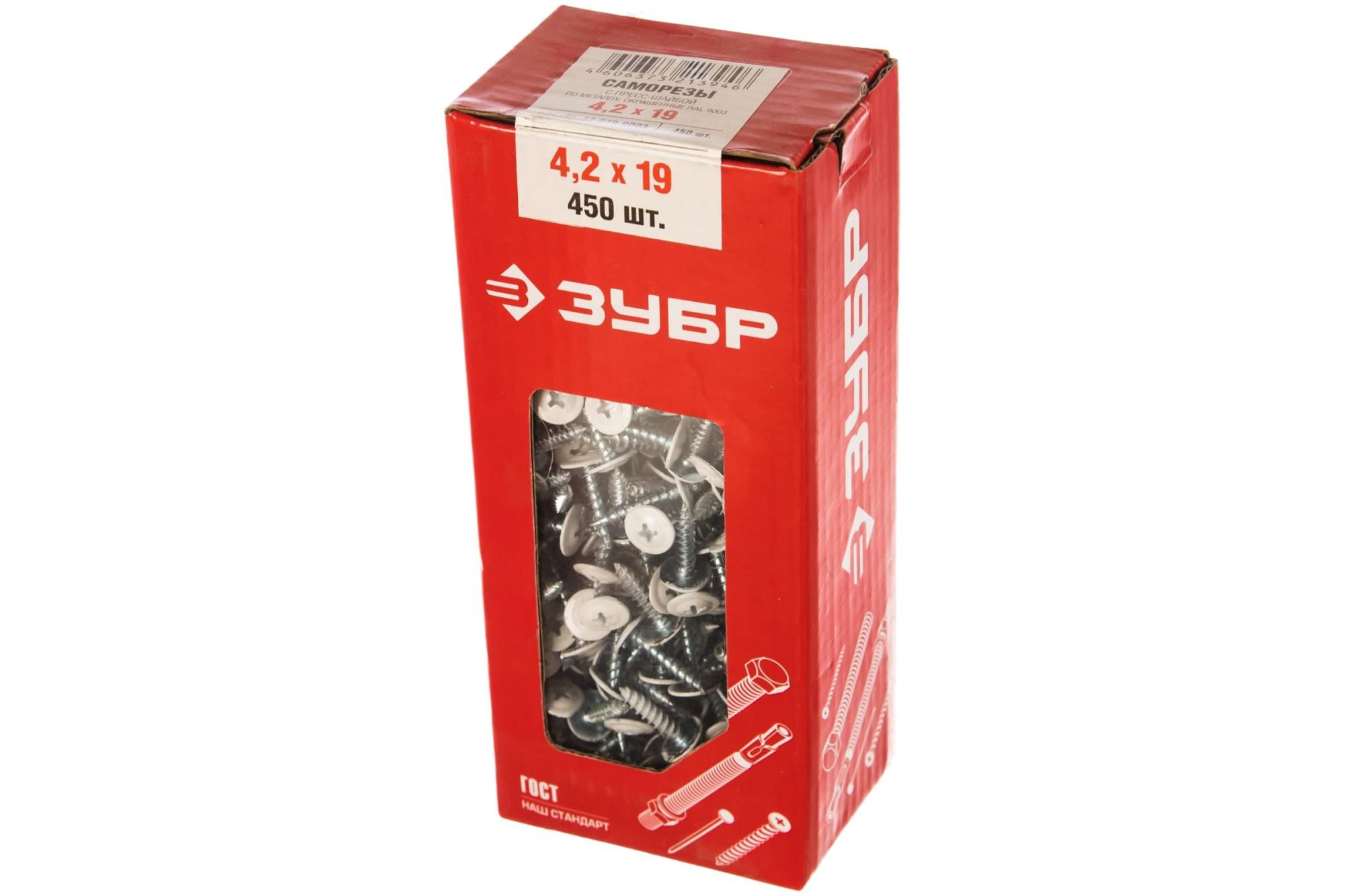 Саморез ЗУБР ПШМ 9003, 19 х 4.2 мм, пресс-шайба, белый, 450 шт 300191-42-019-9003