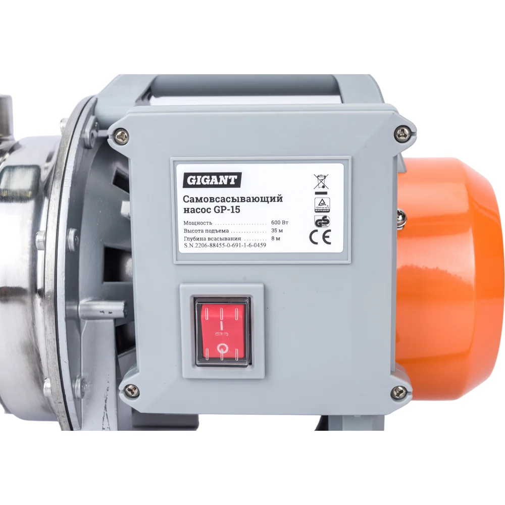 Самовсасывающий насос Gigant GP-15 - высокопроизводительный универсальный аппарат для выполнения различных садовых работ. Оснащен мощным двигателем 600 Вт, который способствует напору до 35 метров и производительности до 3100 л/ч. Имеет прочную конструкцию, термовыключатель, предотвращающий перегрузку электродвигателя. Предусмотрен сливной канал с пробкой для быстрого слива воды (например, перед похолоданием).