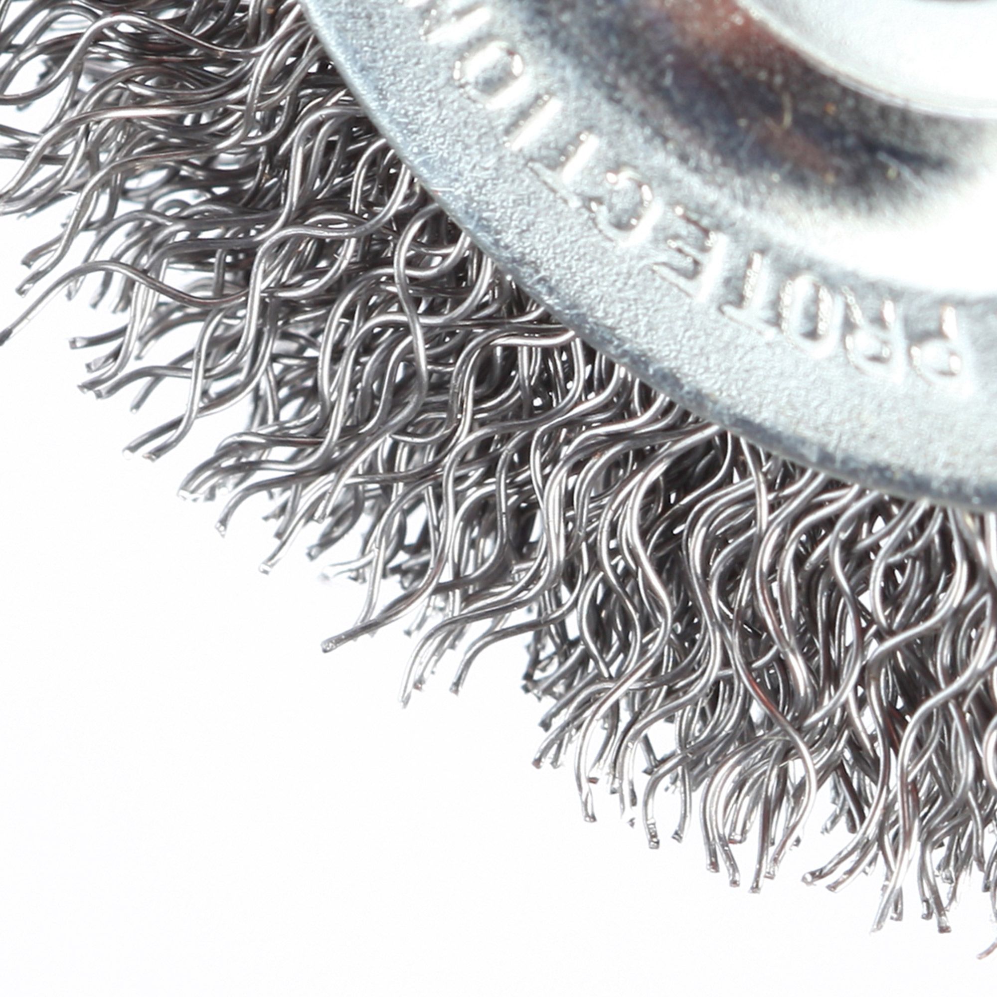 круглая проволочная щетка для дрели; предназначена для снятия лака; краски; зачистки ржавчины; Наружный диаметр: 65мм; вал шестигранник; гофрированная проволока