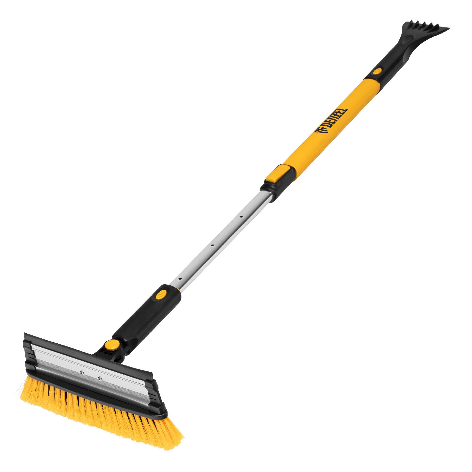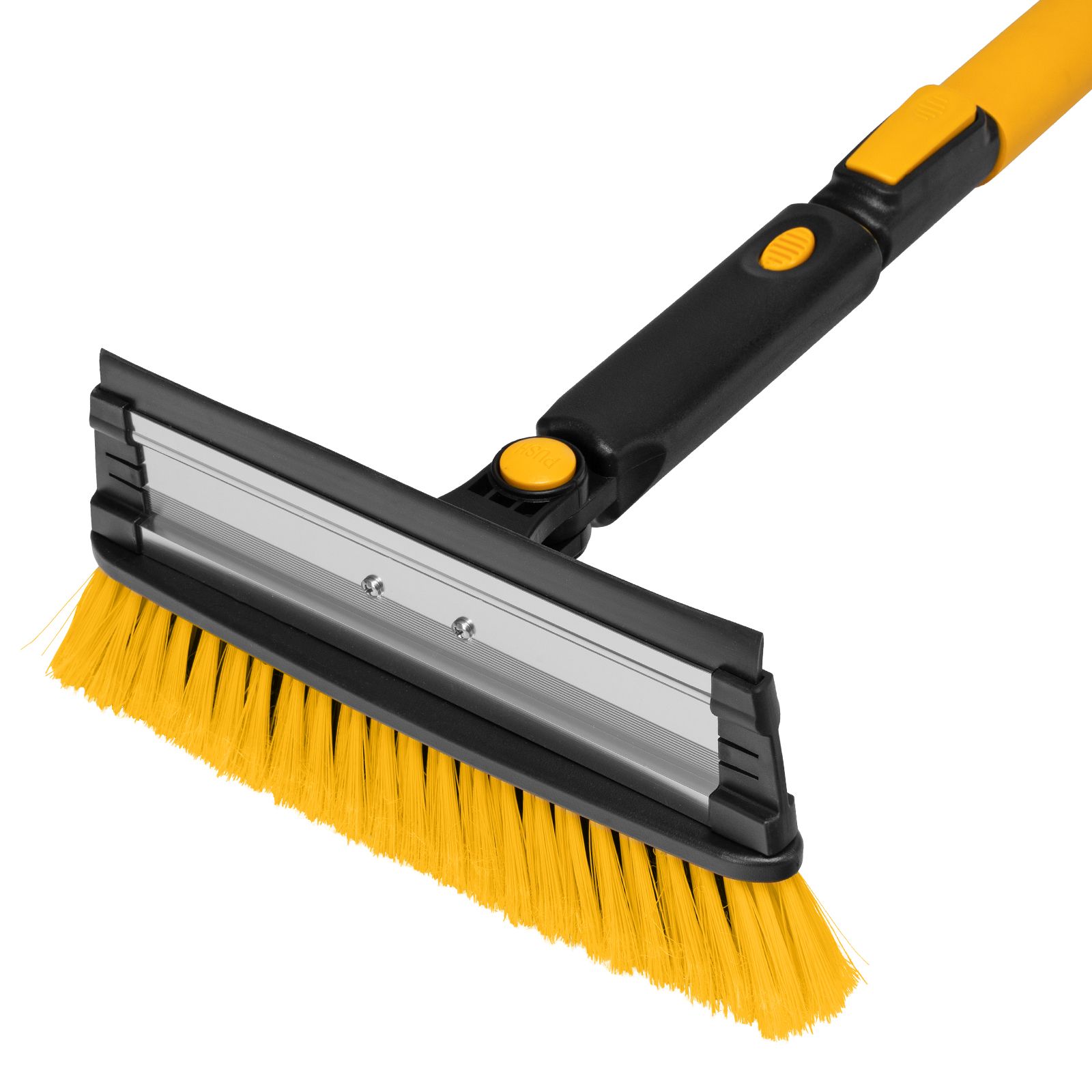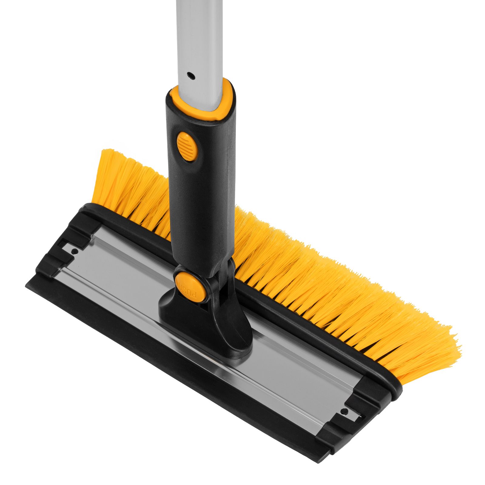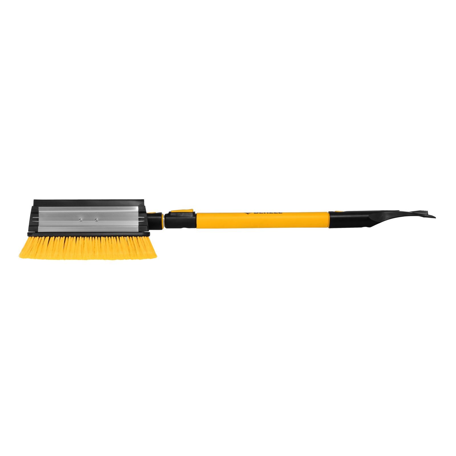 - Регулировка длины — рукоятка выдвигается и фиксируется на длине 900-1200 мм, что позволяет без труда очистить крышу транспортного средства.
